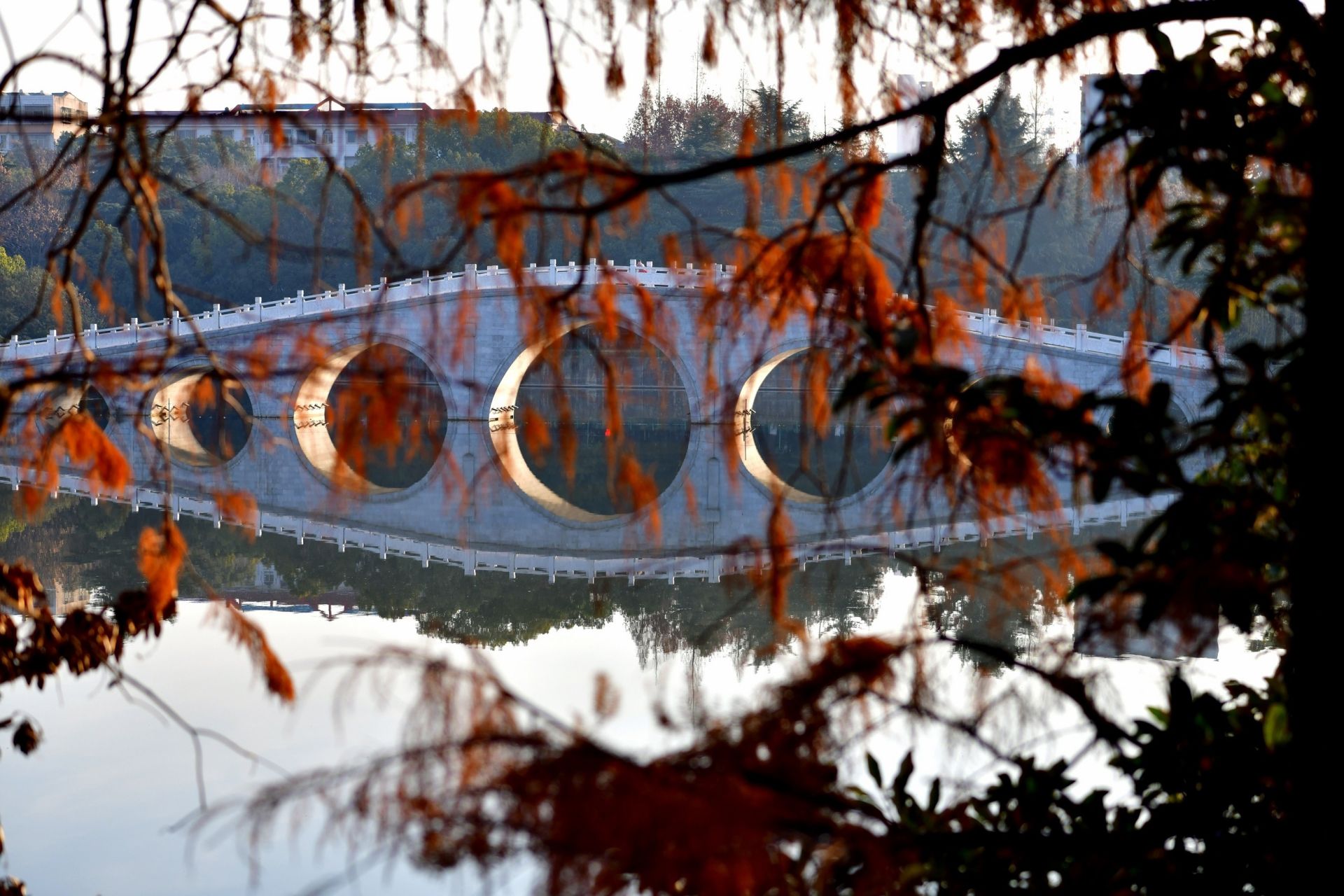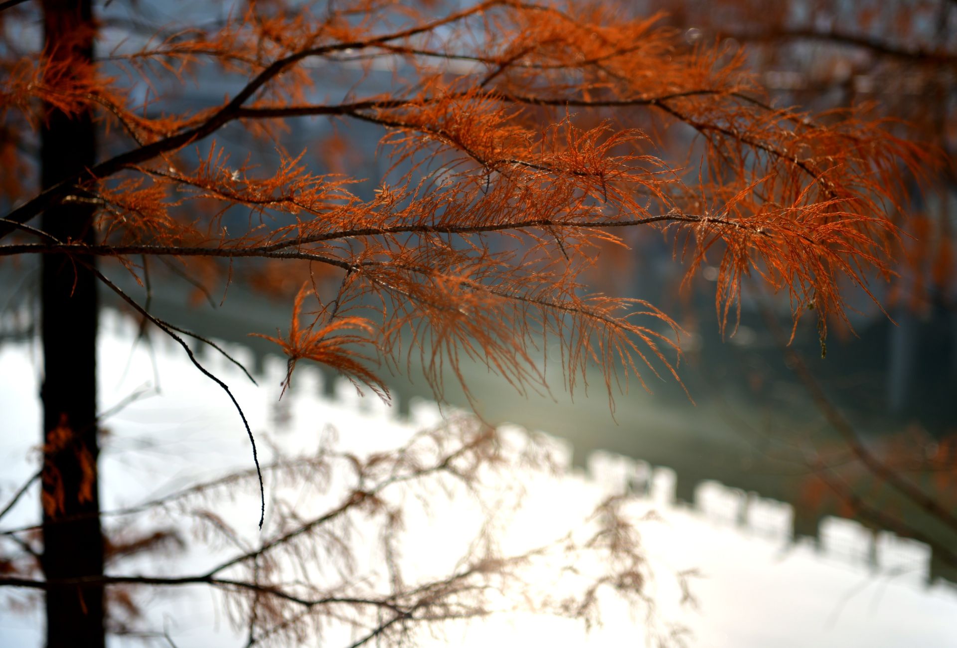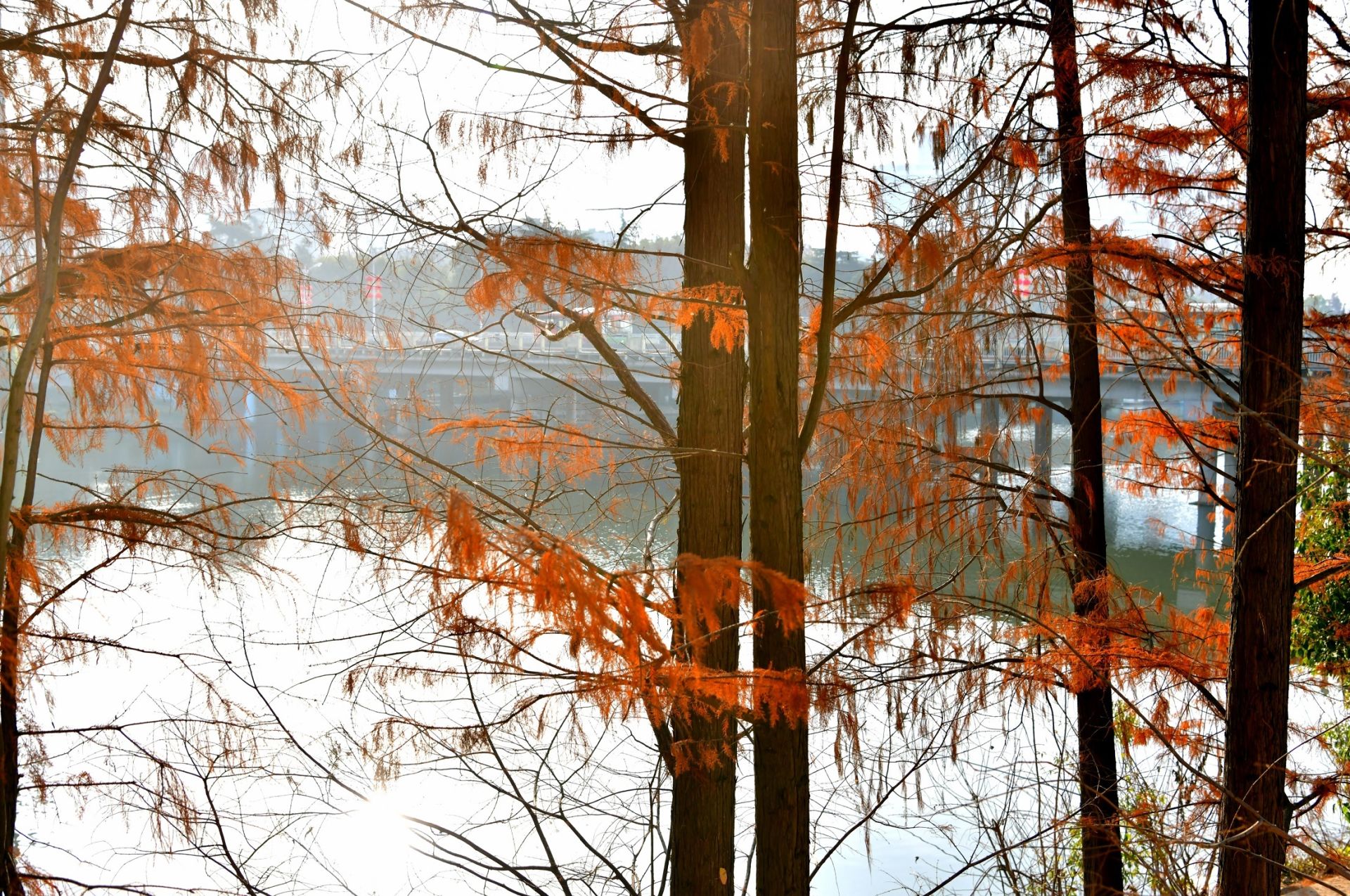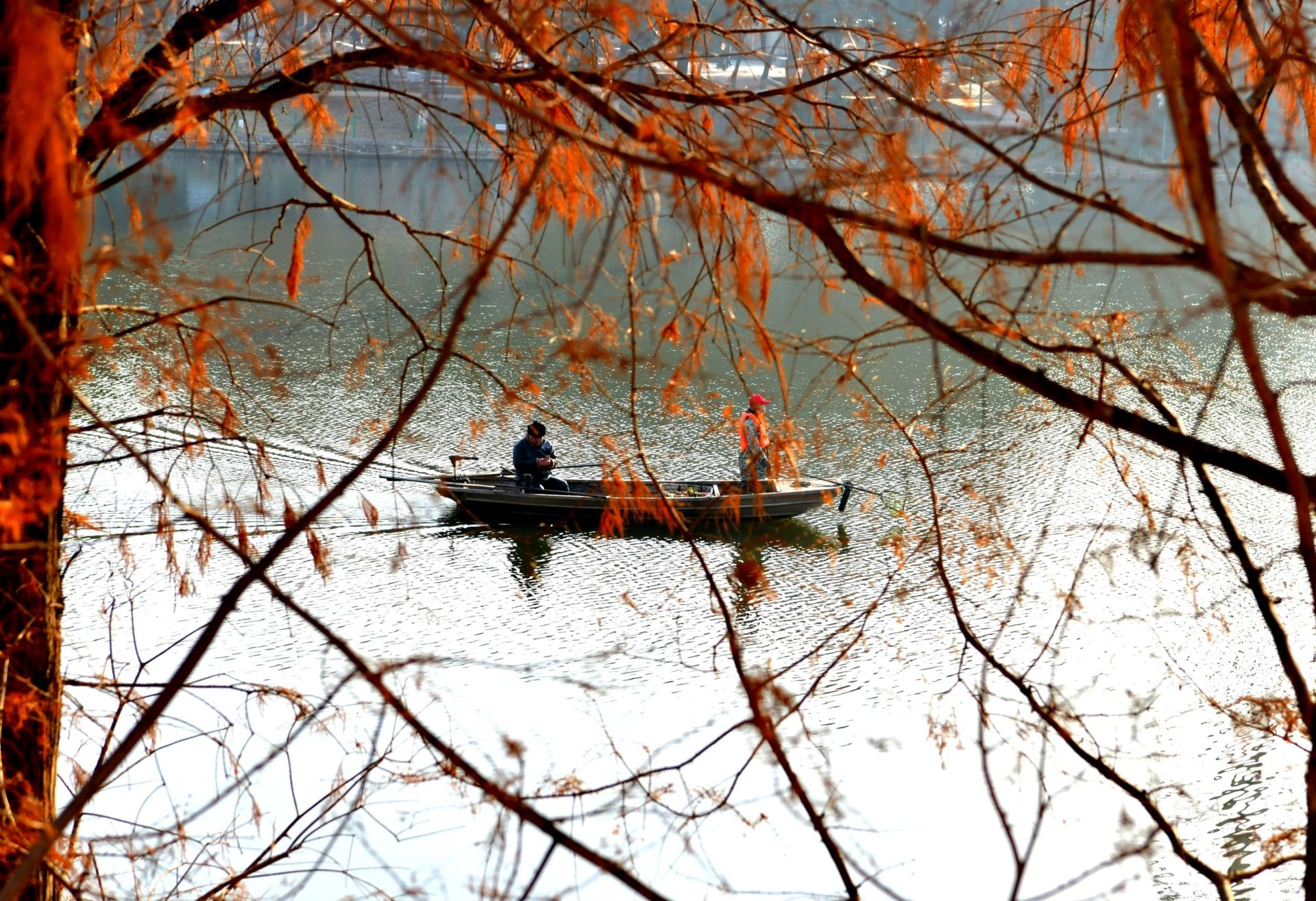 仲冬,在湖北省枣阳市沙河城区段,一树树红杉挺拔水岸,叶红似火,点缀绚烂冬日,诠释出顽强与坚韧,呈现一抹唯美的暖色景观。