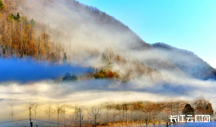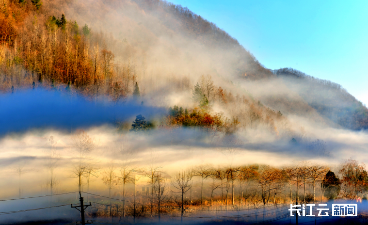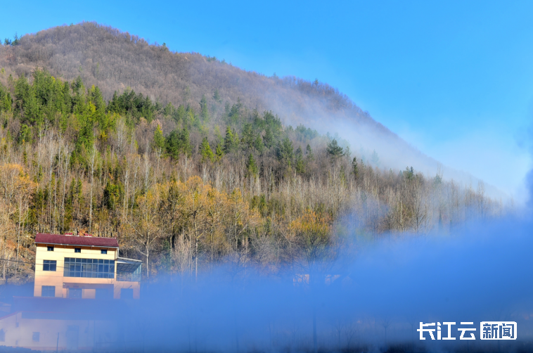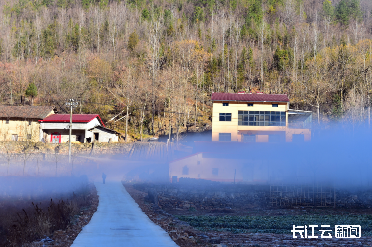 近日,大山深处的襄阳市南漳县薛坪镇石桥村的山坳里晨雾缭绕,美景如画。