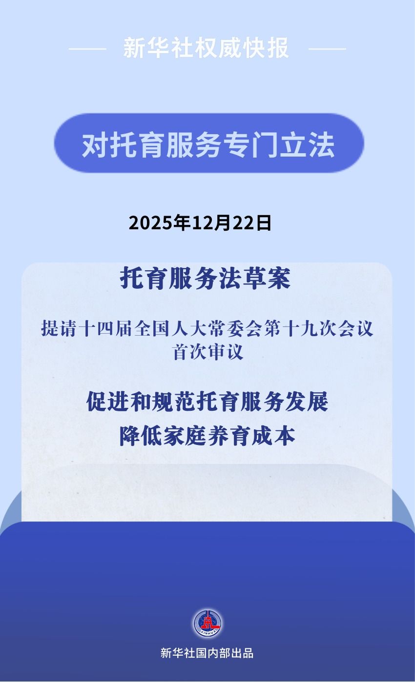 12月22日,备受瞩目的托育服务法草案提请十四届全国人大常委会第十九次会议首次审议。制定托育服务法,是党和国家用法治呵护三周岁以下最柔弱的婴幼儿群体、为万千家庭纾解“育儿焦虑”的重要一步。