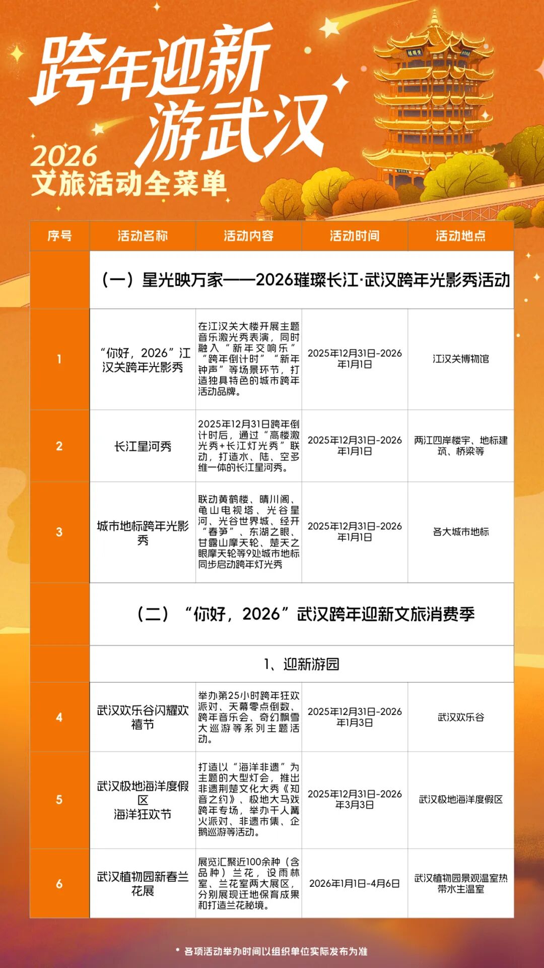 12月23日,武汉召开新闻发布会,以“跨年迎新游武汉”为主题官宣了120+文旅活动。这个跨年夜,武汉将用盛大仪式陪大家迎接2026年。