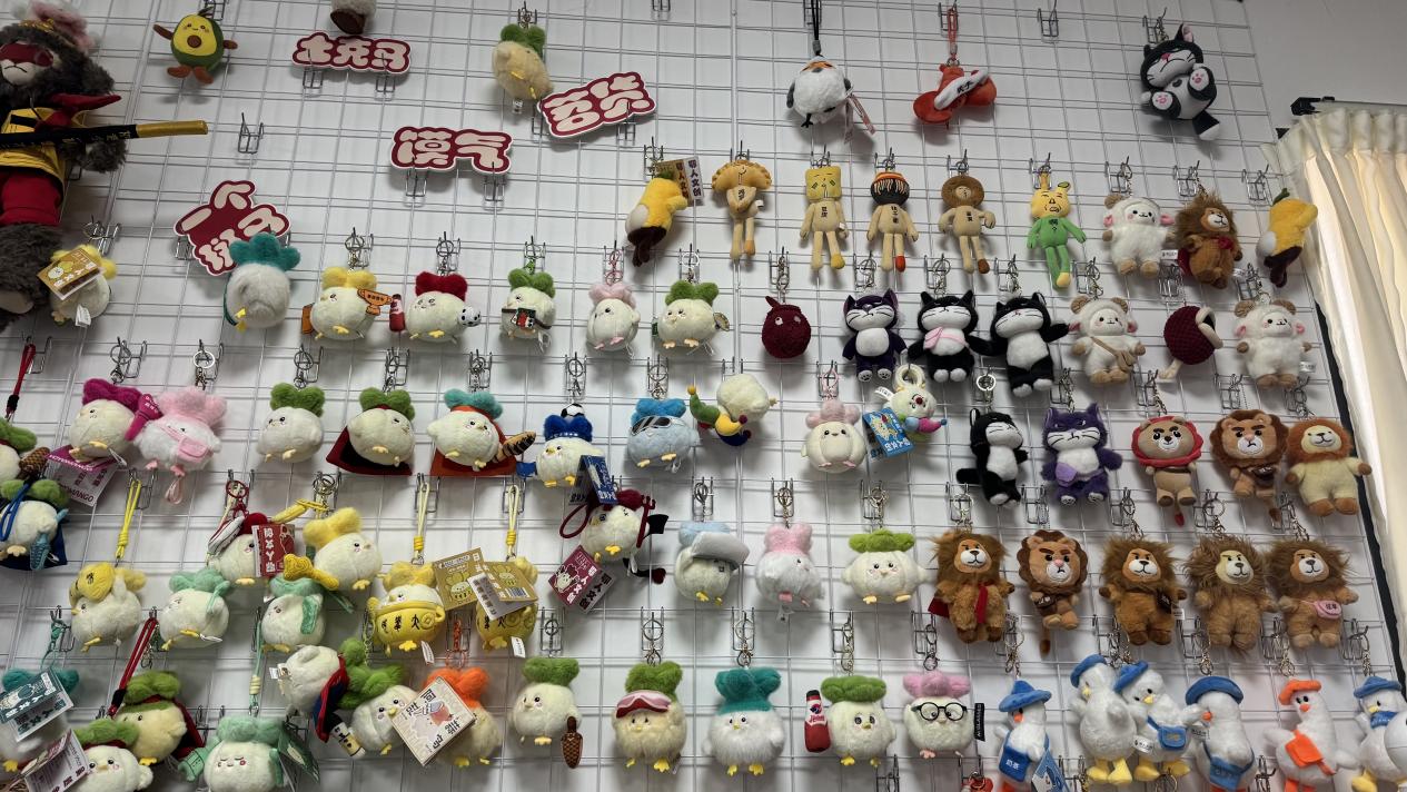 走进公司展厅,一整面墙密密麻麻挂着形态各异的“蒜鸟”:周杰伦演唱会应援版、霸王茶姬联名款、省博越王勾践剑联名款、真茶屋奶茶店限定版、海伦斯小酒馆特别版,甚至还有小米汽车与茅铺酒的定制款……