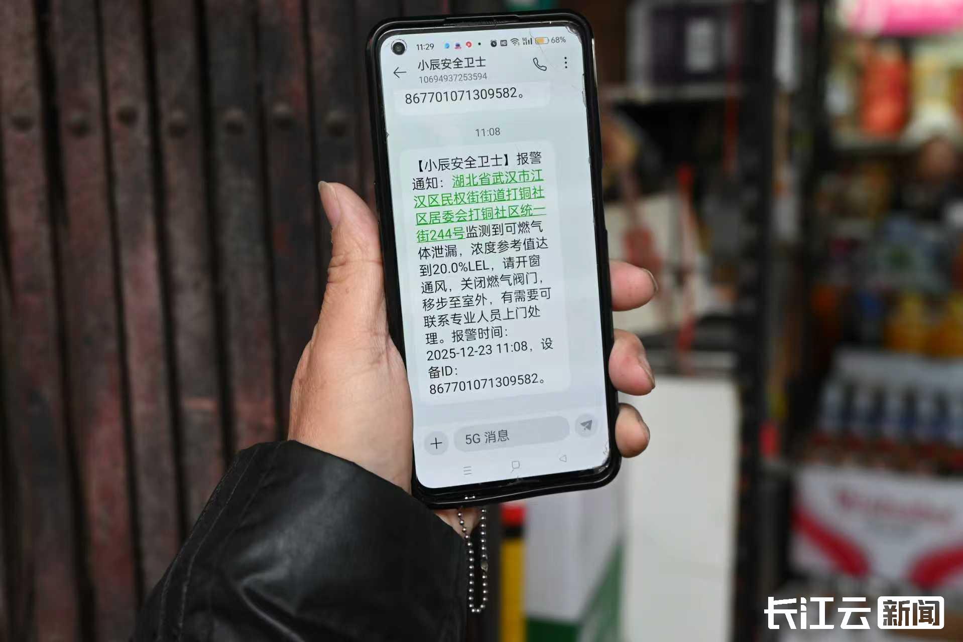 12月23日,在统一街244号居民刘红武家中,工作人员现场演示了报警器的灵敏性与联动效能。当模拟燃气泄漏时,报警器仅3秒便发出警报,刘红武的手机几乎同步收到详细报警短信,清晰提示住址、燃气浓度(如20%)及应急处置指引。刘红武告诉记者,此前家人不慎关闭报警器电源,一分钟内就收到预警电话,“现在出门再不用担心家里燃气安全,心里踏实多了。”