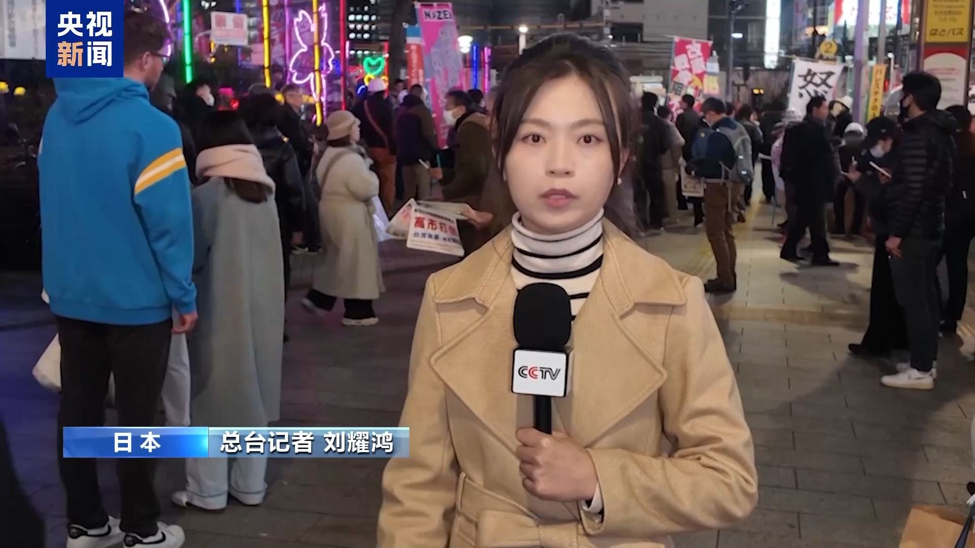 总台记者 刘耀鸿:当地时间23日晚,日本民众再次走上街头举行抗议活动,他们要求高市早苗停止煽动战争,并立即撤回涉台错误言论。
