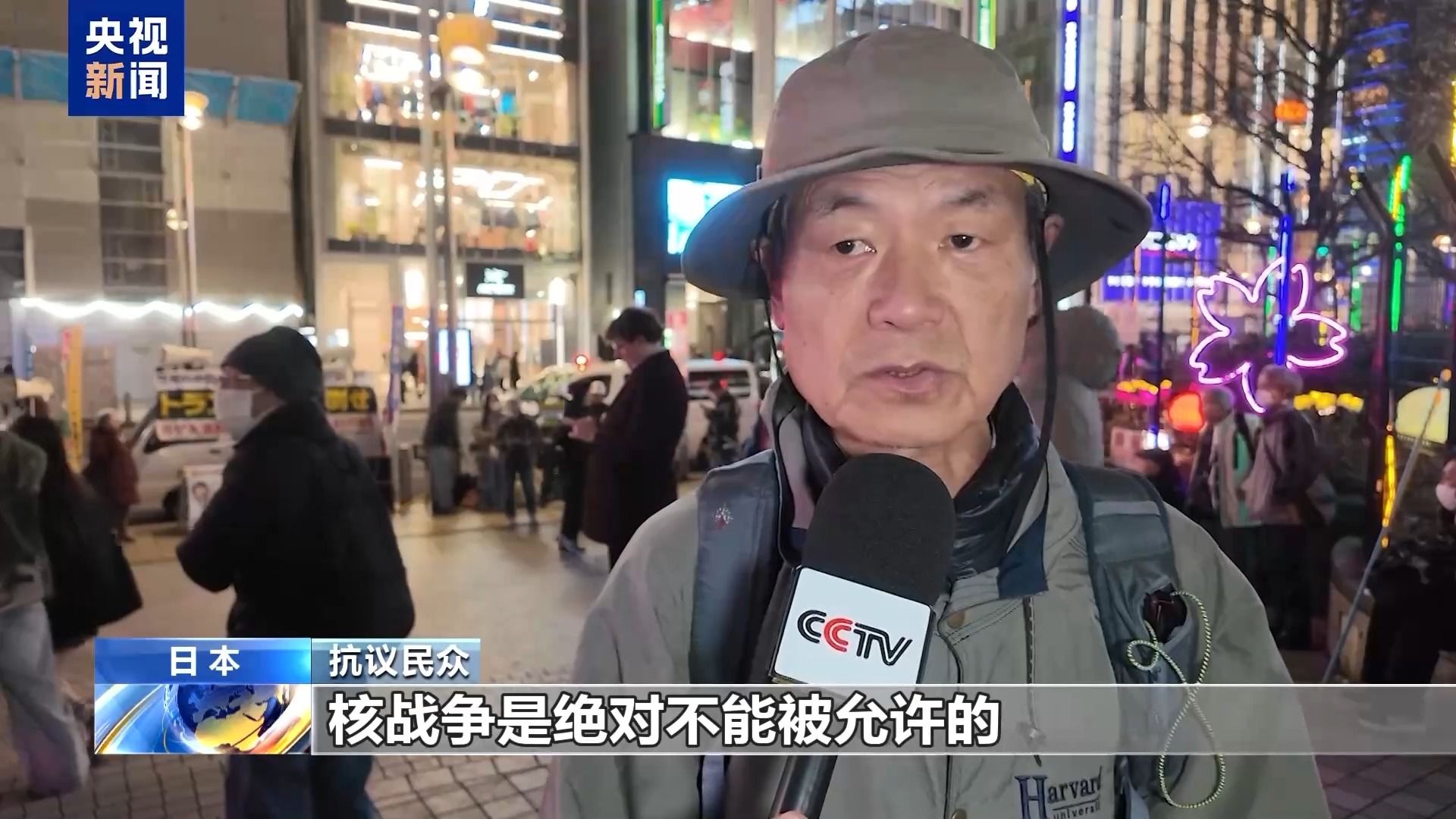 抗议民众:现在日本正在讨论,包括重新审视“无核三原则”在内的政策,也就是说日本要进行核武装。日本曾经是遭受过原子弹轰炸的国家,核战争是绝对不能被允许的。