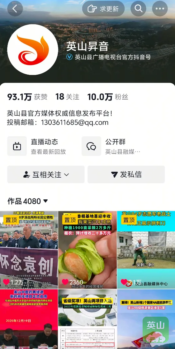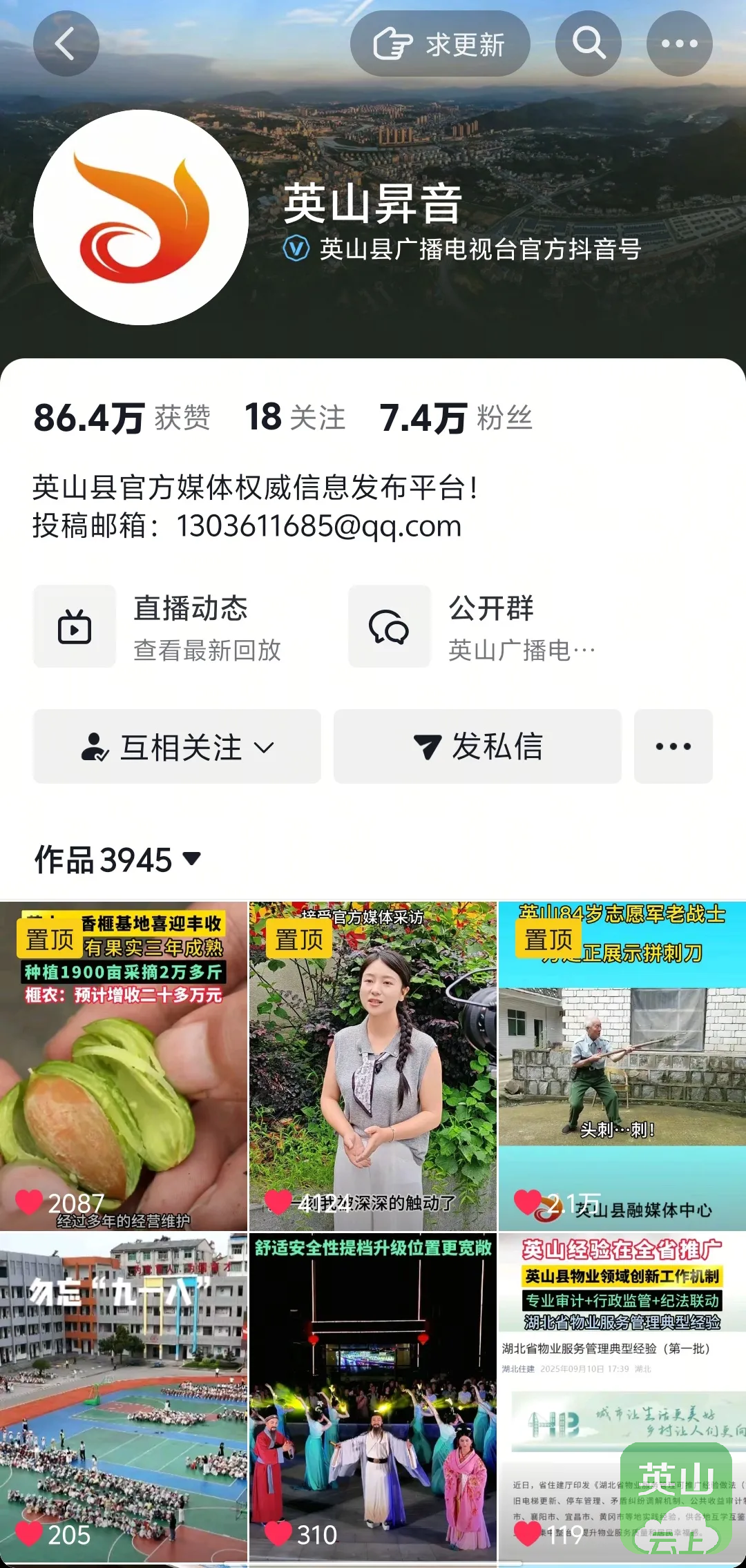 突破10万!英山县官方媒体账号粉丝量1年净增4万