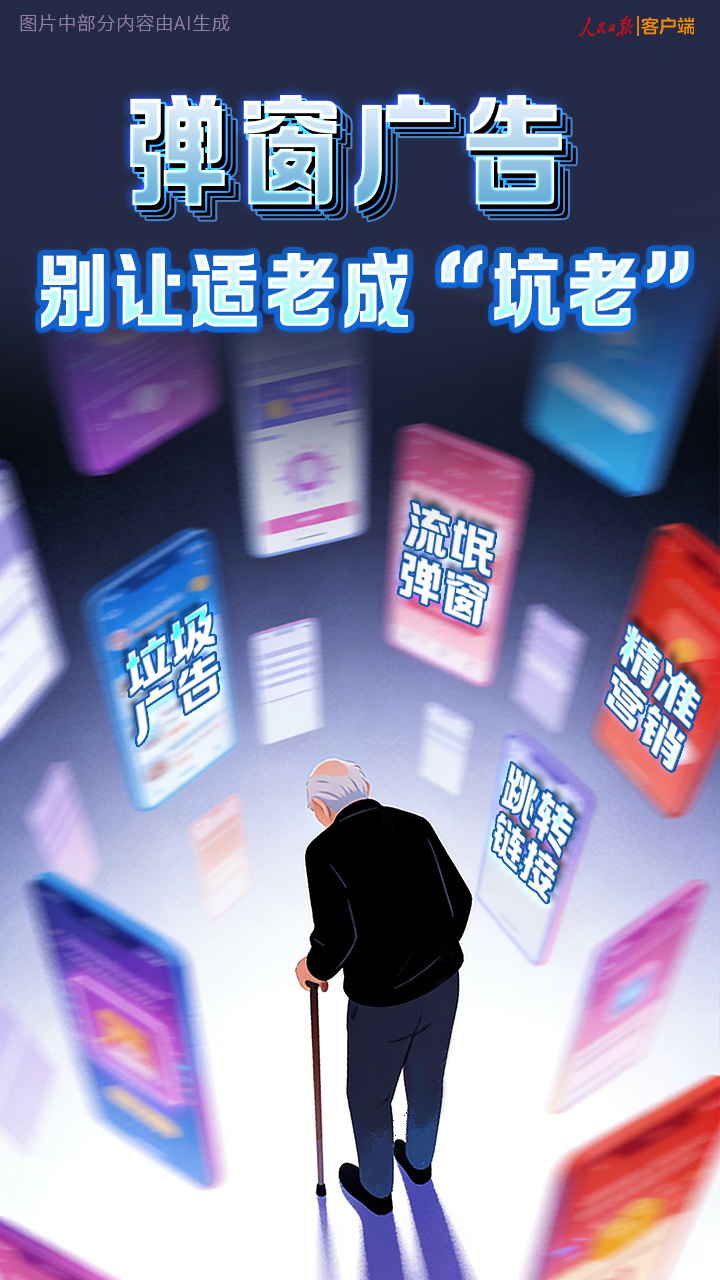 随着移动互联网的普及,银发群体正深度共享数字发展成果。统计显示,截至今年6月,60岁及以上银发网民规模达1.61亿人。然而,部分企业将老年群体视为“流量肥肉”,利用老年人闲暇时间充裕、网络素养不足、防范意识不高的特点,通过大数据精准画像,向老人定向推送真假难辨的理财、保健、养老等弹窗广告,不仅让老年人的数字生活体验大打折扣,还让一些老年人掉入消费陷阱、诈骗圈套。