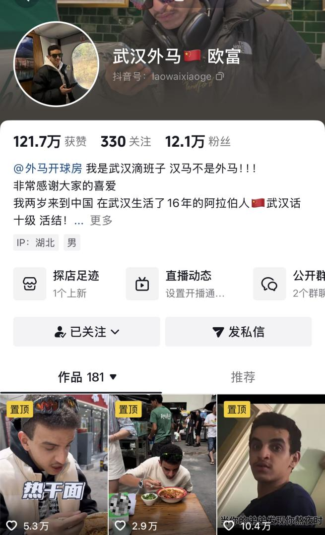 对欧富来说,学武汉话的契机很偶然,小时候他跟父母去菜场,耳边充斥的都是浓烈的汉腔,耳濡目染之下也就学会了武汉方言的腔调。真正的转折发生在2024年,他发布了第一条用武汉话拍摄的视频。“没想到它火了!”欧富告诉长江云新闻记者,当时他甚至都没看后台数据,直到发现时已经收获了大量的关注和点赞。视频里,一张典型的老外面孔流利地说着武汉话和地道俚语,强烈的反差瞬间吸引了众多网友。