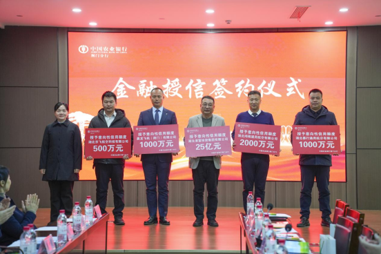 活动聚焦新区重点培育的低空经济产业,依托农行荆门分行全链条融资产品体系,落实简化审批流程、创新信用担保、优化利率定价、兑现贴息减费等惠企举措,现场向漳富集团、鸿萌通用航空、墨行航空、晨龙飞机、京飞航空分别授予25亿元、2000万元、1000万元、1000万元、500万元信用额度,总授信超25.45亿元,资金将精准支持企业生产扩张、技术研发、项目落地等关键环节。下一步,漳河新区将持续强化政策供给与服务保障,深化政银企协同机制,落实财政贴息、风险补偿等政策红利,推广适配产业发展的定制化金融产品,切实让惠企政策红利转化为产业发展实效。