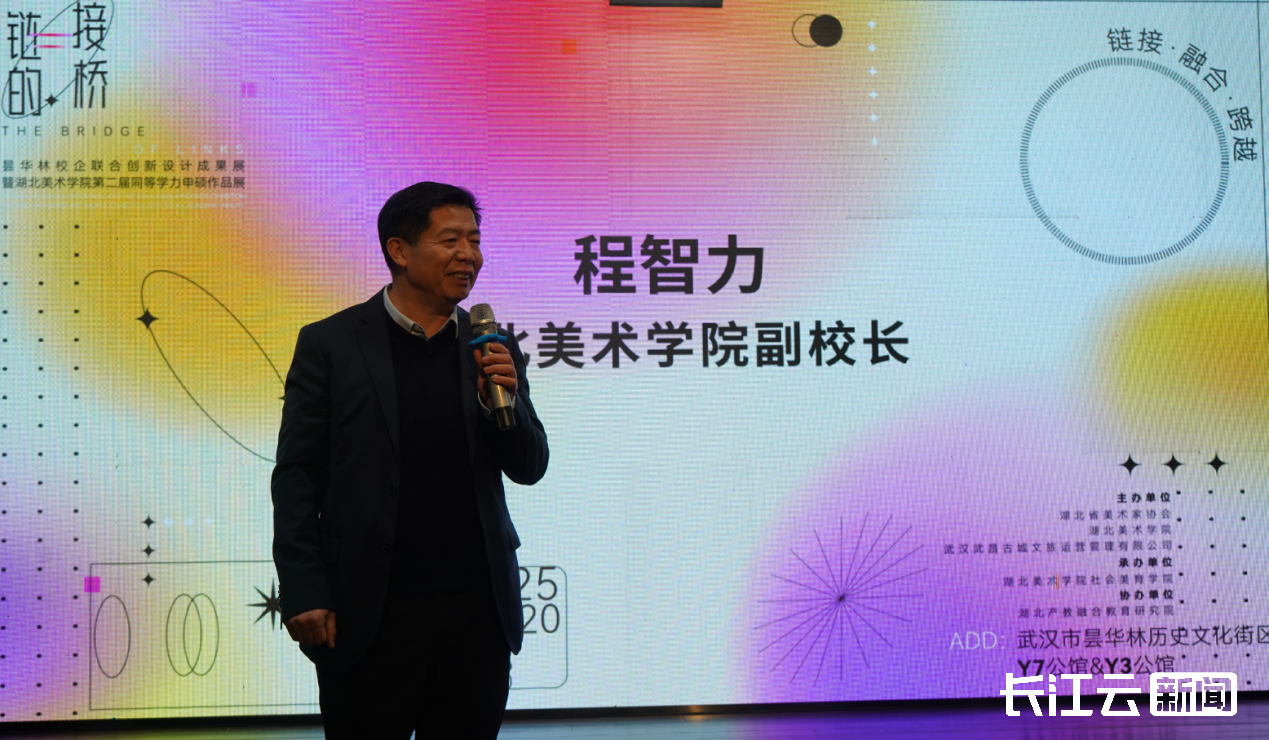 作为主办方代表,湖北美术学院副校长程智力指出,此次校企联合创新设计成果展不仅是作品的展示平台,更是湖北美术学院推动社会美育实践、促成艺术与城市共生的重要探索。他说,昙华林是武汉的文化根脉所在,为艺术创意植入城市肌理、让美育真正触达公众提供了绝佳场域。