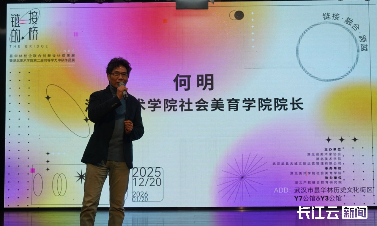 如何让艺术走出象牙塔,实现与社会的双向赋能?湖北美术学院社会美育学院院长何明给出了答案。他向记者介绍:“本次展览汇聚了全国优秀艺术创作者,作品涵盖绘画、设计、影像、装置、数字艺术等多种形态,全方位回应‘链接·融合·跨越’的时代命题。我们希望以昙华林为支点,推动美育从学院走向街区、从创作走向服务,让艺术真正成为激活城市活力、滋养市民心灵的力量。”