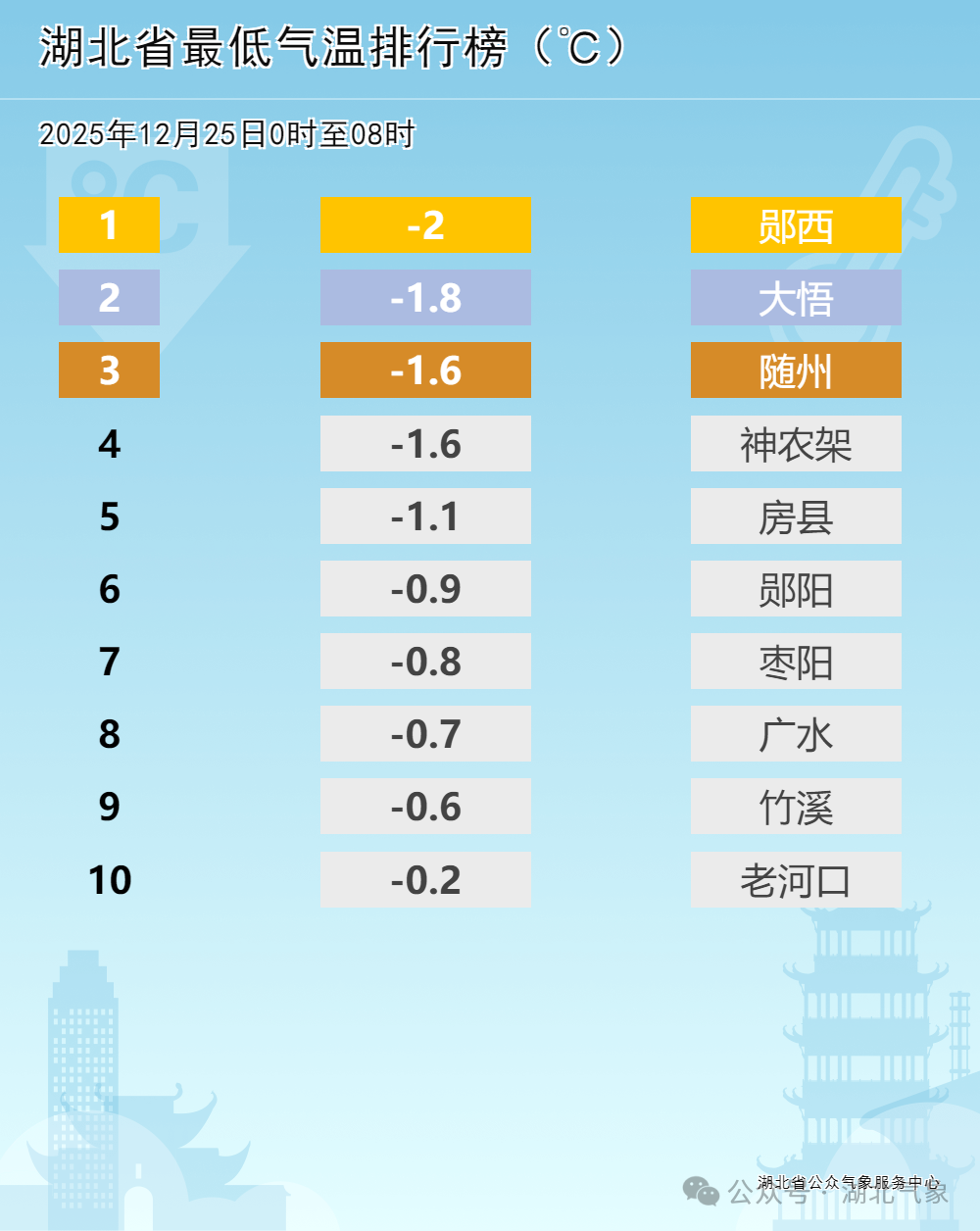 湖北最低气温进一步下探