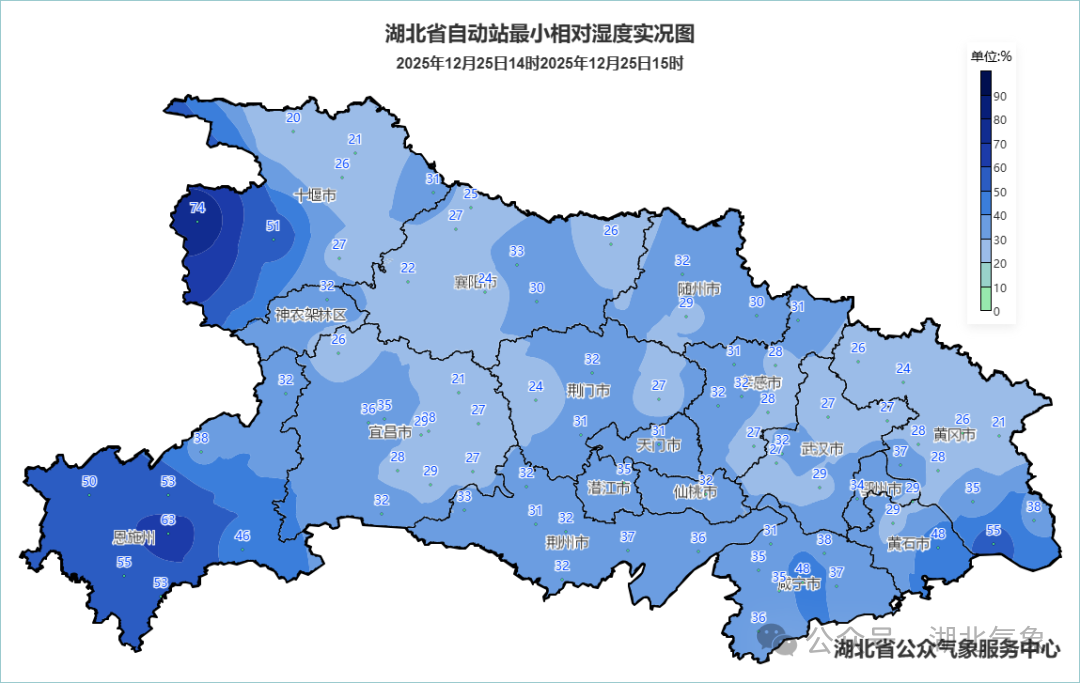 午后湖北多地最小相对湿度