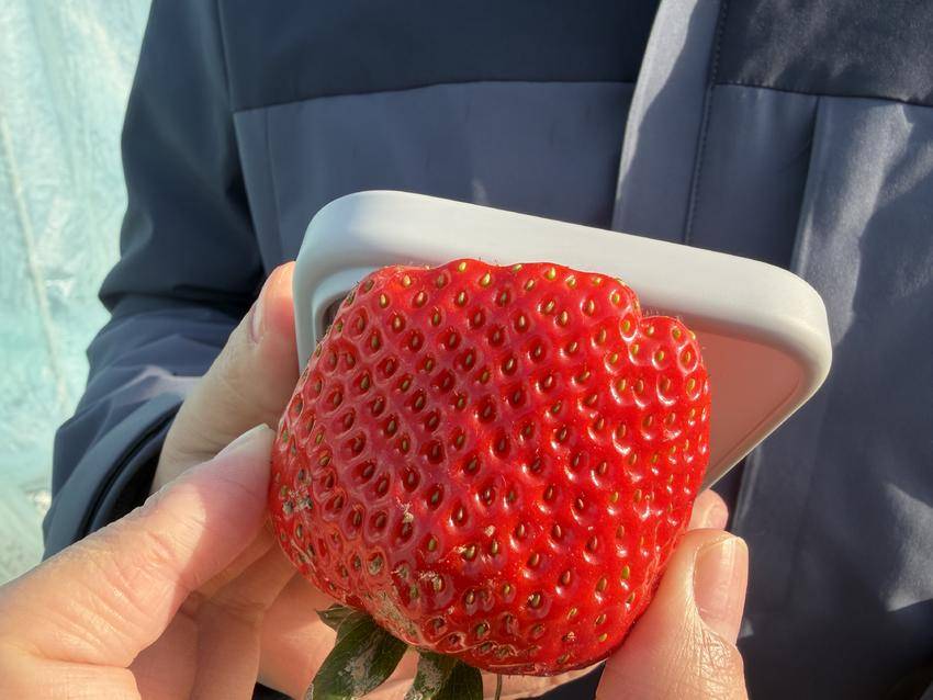 走进基地的8个草莓大棚,翠绿的藤蔓间点缀着饱满诱人的草莓果,阵阵果香扑鼻而来。蜜蜂穿梭在花丛中进行自然传粉,从源头上保障草莓的原生态品质。基地坚持纯天然种植模式,全程不添加激素、不催熟、不使用化学农药,施肥选用农家肥与生态肥,培育出的红颜草莓口感醇厚,酸甜适中,还原了“小时候的草莓味道”。