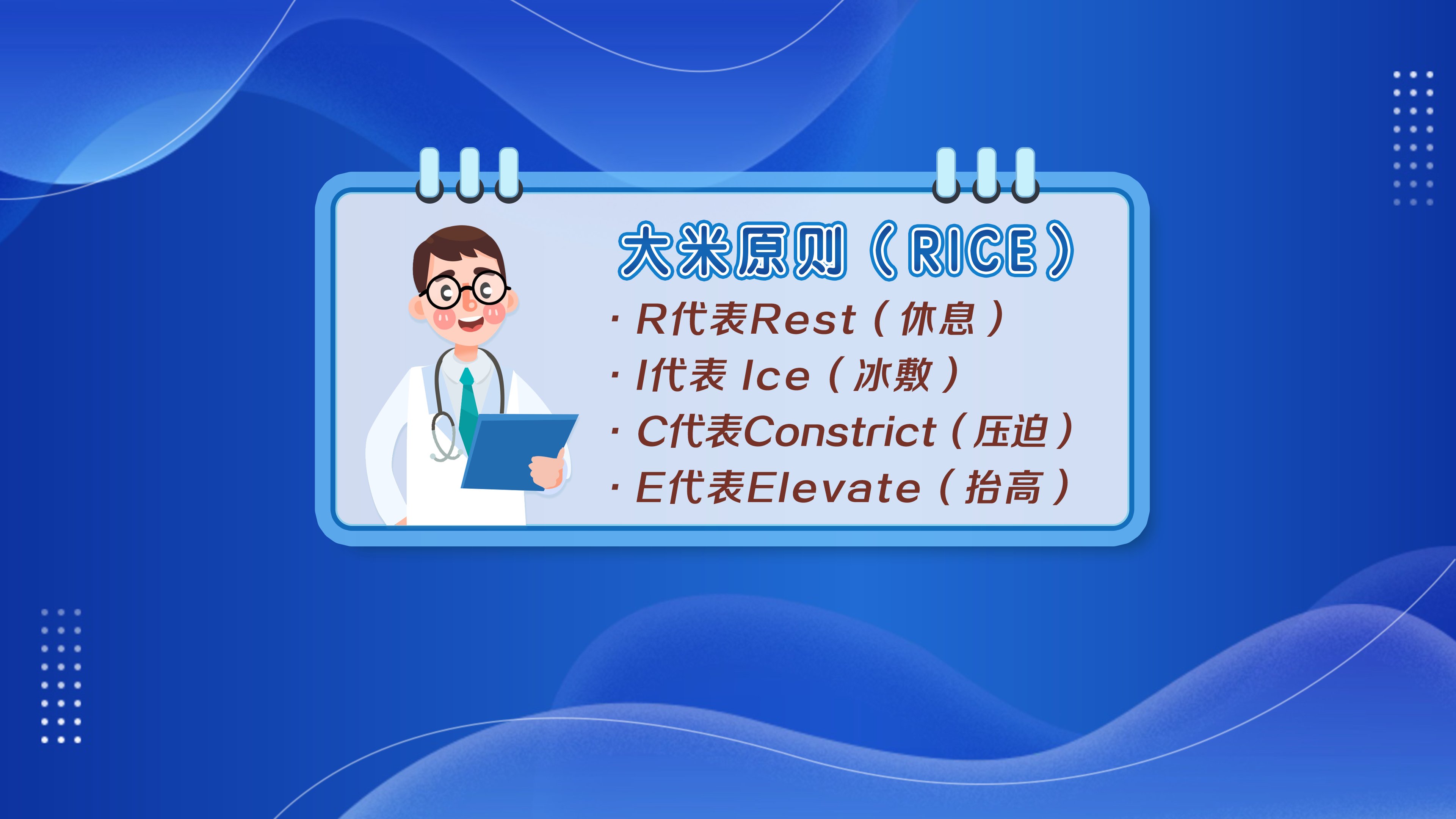 R(Rest)休息:立即停止受伤部位运动,避免二次损伤;