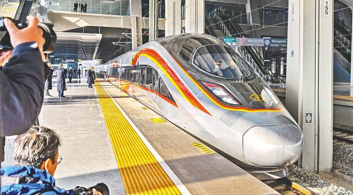张家口车站的追风梦想,随着复兴号驰骋。在首发列车上,武汉理工大学孟加拉国籍教授加力布通过网络向朋友分享中国见闻;司机骆思文沉稳驾驶,感慨“车在变,速度在提,安全始终是第一”。
