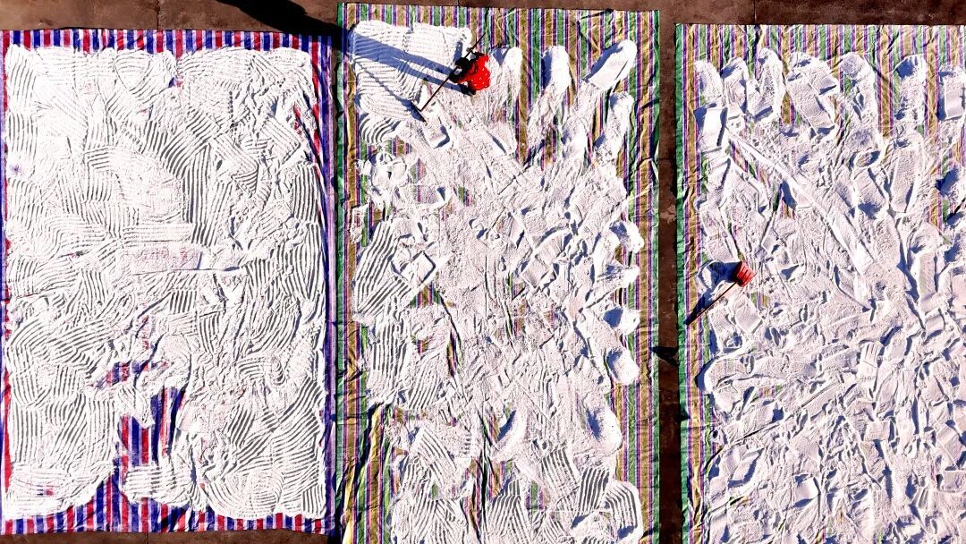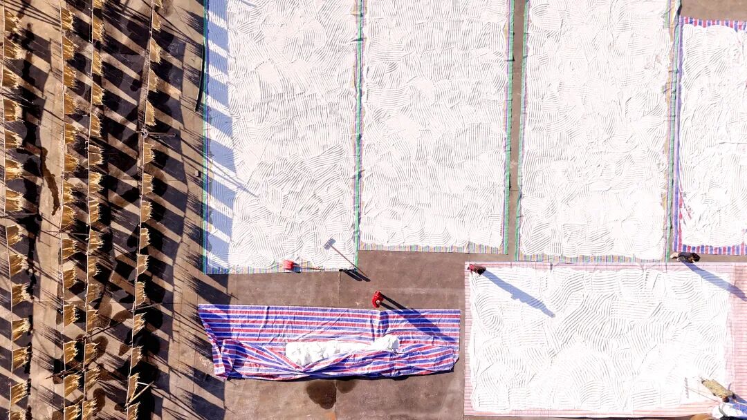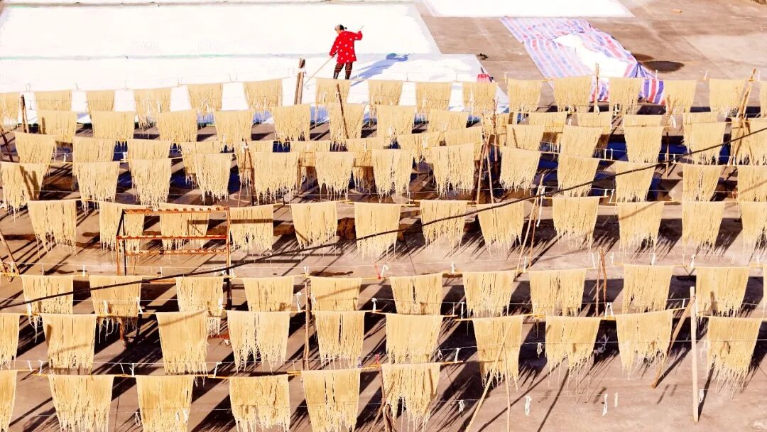 寒冬时节,在郧阳区茶店镇长坪村,村民们正抢抓晴好天气晾晒红薯粉、制作红薯粉条,长坪村的手工红薯粉条因筋道滑爽而远近闻名,每年都是市场上的紧俏货。