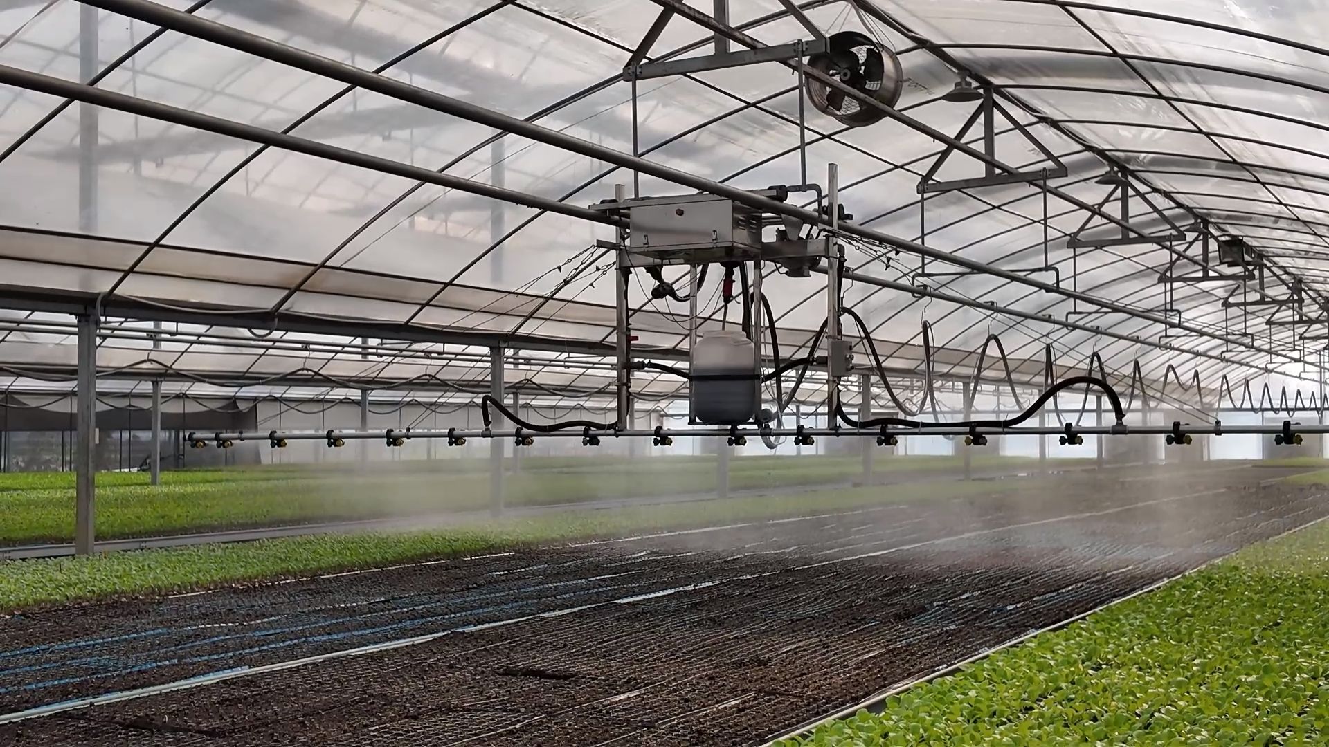 据悉,该育苗工厂采用全自动化播种生产线、智能环境控制系统和水肥一体化灌溉技术,实现了对温度、湿度、光照和养分的精准调控。自动巡航的喷洒灌溉系统和精准的环境控制设备,描绘出一幅现代智慧农业的生动图景。