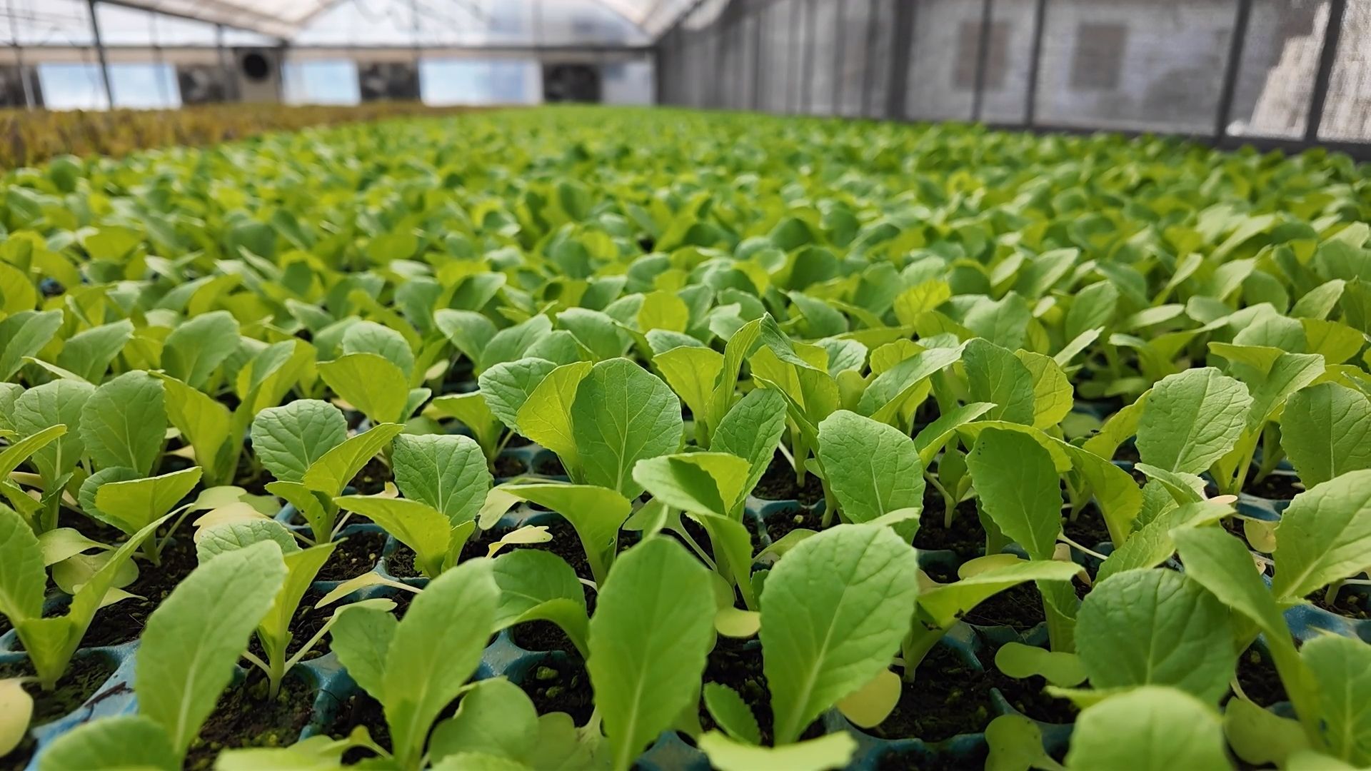 育苗工厂负责人盛东山介绍:“工厂培育的蔬菜秧苗根系发达、茎秆粗壮,移栽后缓苗快、成活率高。目前工厂内有甘蓝、白菜、莴笋,总计大概100多万株苗。”