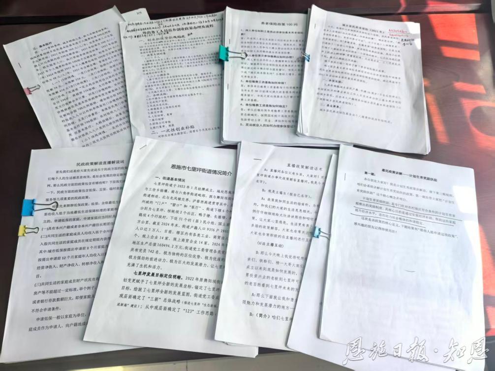 “乡亲们、家人们,晚上好!欢迎来到我们的村干部政策宣讲和电商助农直播间……”每晚6点,恩施市七里坪街道村干部摇身一变为主播,在镜头前熟练讲解医保社保、返乡创业等政策,不时与网友互动、答疑,直播间一派热闹。