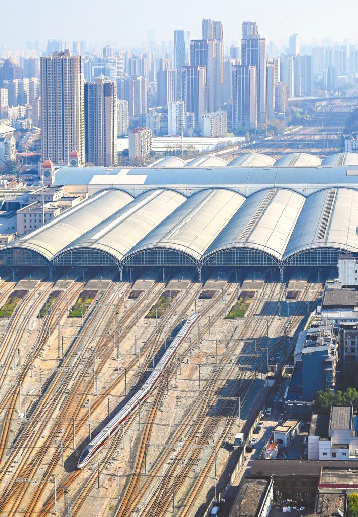 12月26日11时03分,沿江高铁武宜段首发列车G6800次驶进汉口站。 (湖北日报全媒记者 柯皓 摄)