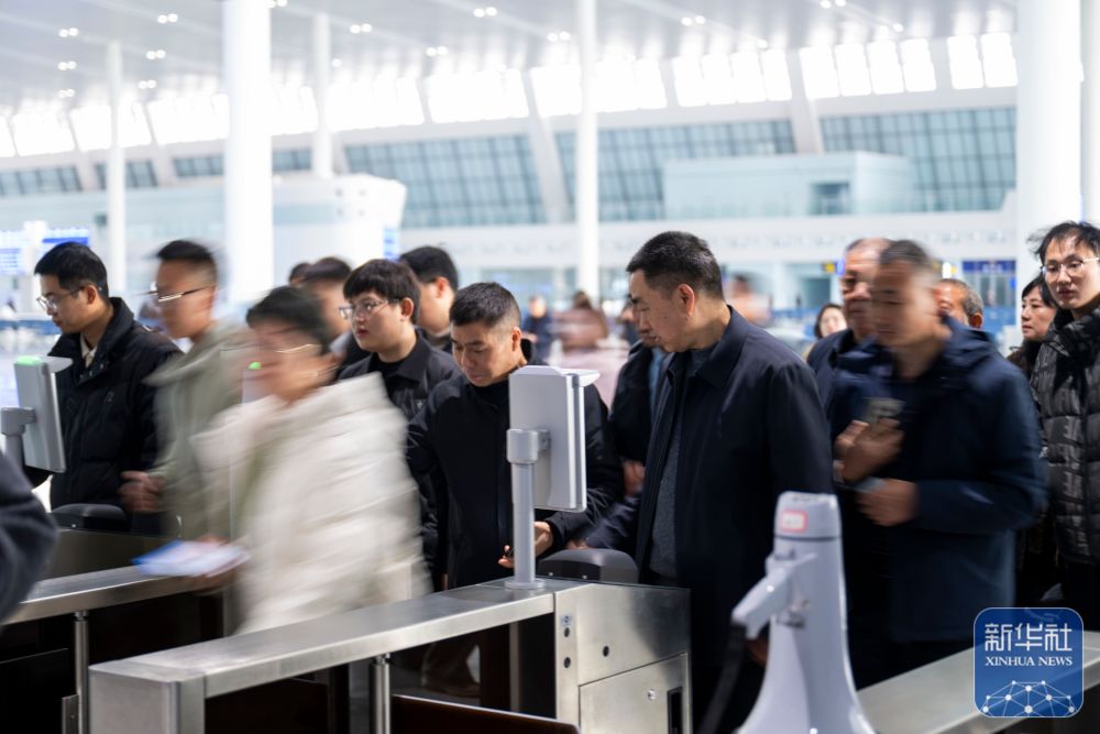 ↑ 12月26日,旅客在宜昌北站候车大厅检票进站。