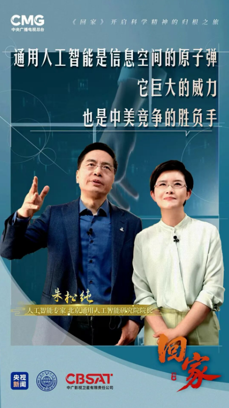 朱松纯海外深耕28载,曾长期任教于美国加州大学洛杉矶分校(UCLA),在国际人工智能领域享有盛誉。2020年,在全球科技竞争格局深刻变化的背景下,他毅然回国,牵头创建北京通用人工智能研究院,投身中国通用人工智能的基础理论与原创路径探索。这一选择,被节目形容为“让通用人工智能的星辰大海,在中国大地着陆”。