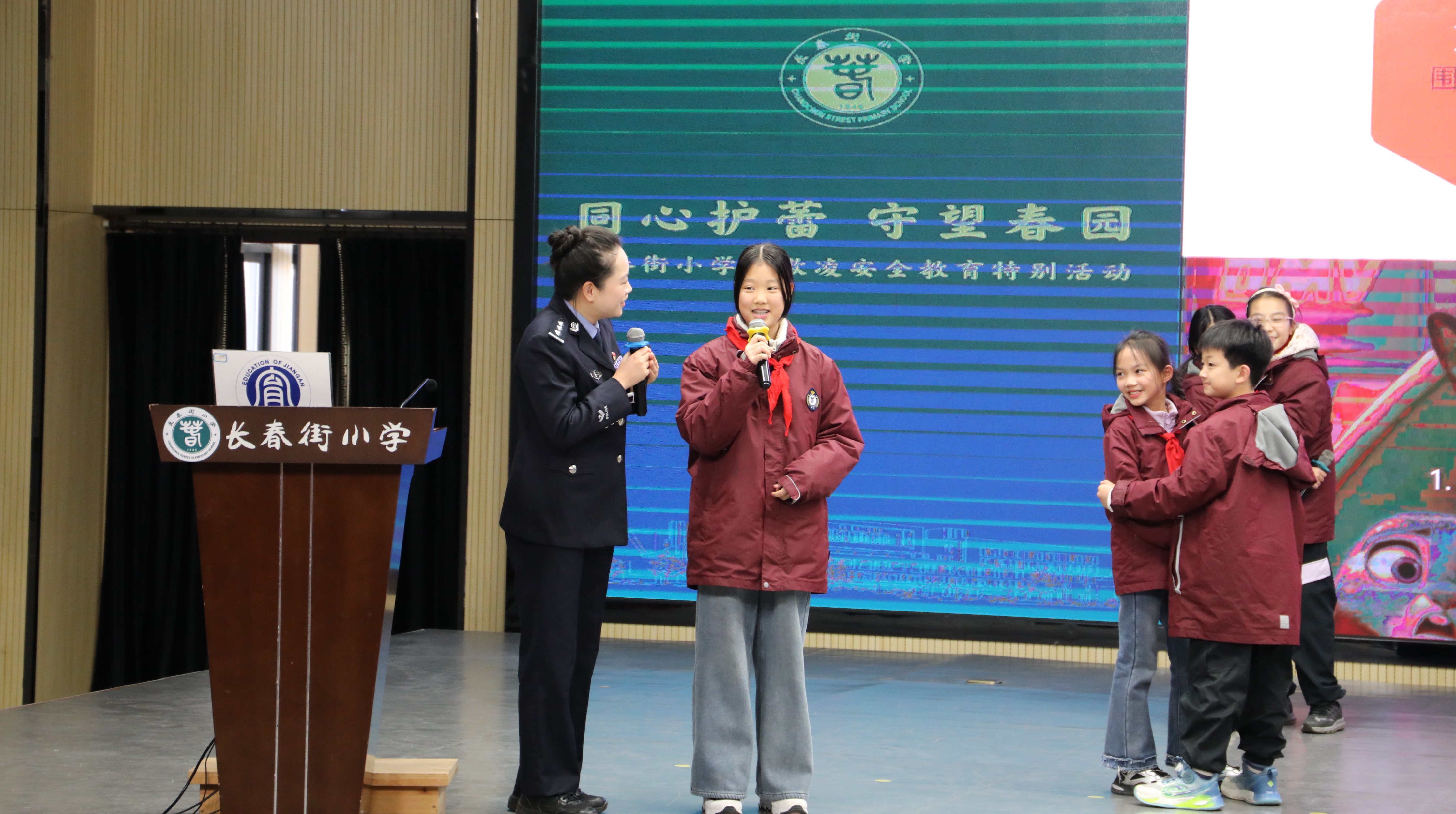 12月26日,在武汉市江岸区长春街小学的反欺凌讲座中,同学们对“遇到欺凌行为怎么办”的回答,让武汉市公安局治安支队“暖阳”未保工作室负责人、武汉少年警队总辅导员阮洋连连点赞!自武汉少年警队12月开展“反欺凌”主题实践活动月以来,已先后在五所中小学开展专题讲座。这场兼具趣味性与专业性的反欺凌讲座,通过“现场互动+线上直播”的形式覆盖长春街小学4000余名师生,吸引了所有师生的注意。