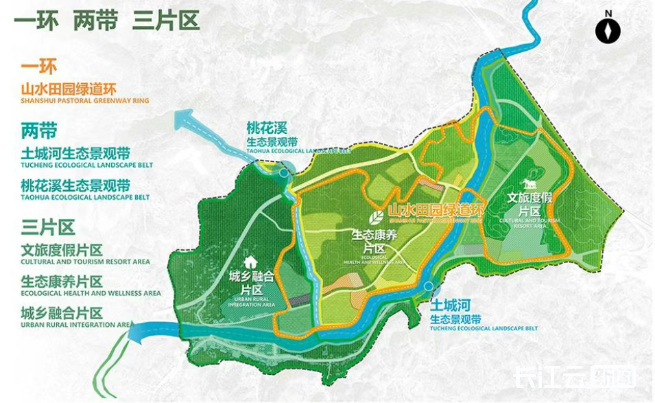 项目位于点军区土城乡曹家畈,地处宜昌近郊,毗邻土城集镇,交通便利,桥边河穿行而过,生态河谷环境优美,并拥有天然温泉资源。规划建设将围绕“一环两带三片区”展开,具体包括山水田园绿道环,土城河生态景观带和桃花溪生态景观带,以及文旅度假片区、生态康养片区和城乡融合片区三大功能区域。文旅度假片区将布局温泉酒店、恒温水乐园等业态,致力于打造长江经济带上的高品质文旅康养小镇。