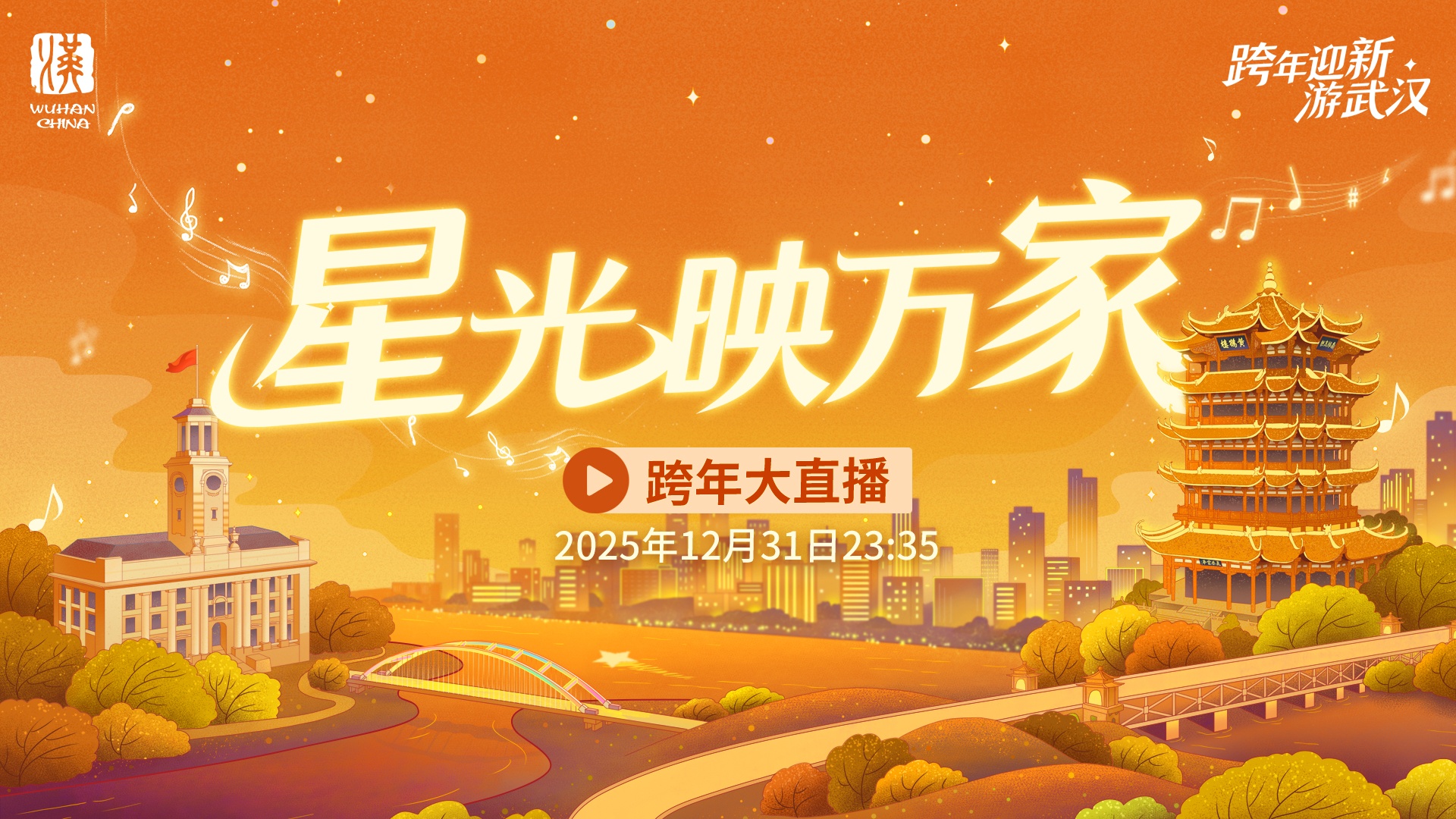 2025年12月31日至2026年1月1日,武汉市将在江汉关大楼举办“你好,2026” 江汉关跨年光影秀活动。直播将带您共同用交响乐迎接新年钟声的敲响,打卡江汉关跨年激光秀,邂逅两江四岸动感炫彩的长江星河秀,云游9大城市地标同步开启的璀璨光影盛宴。