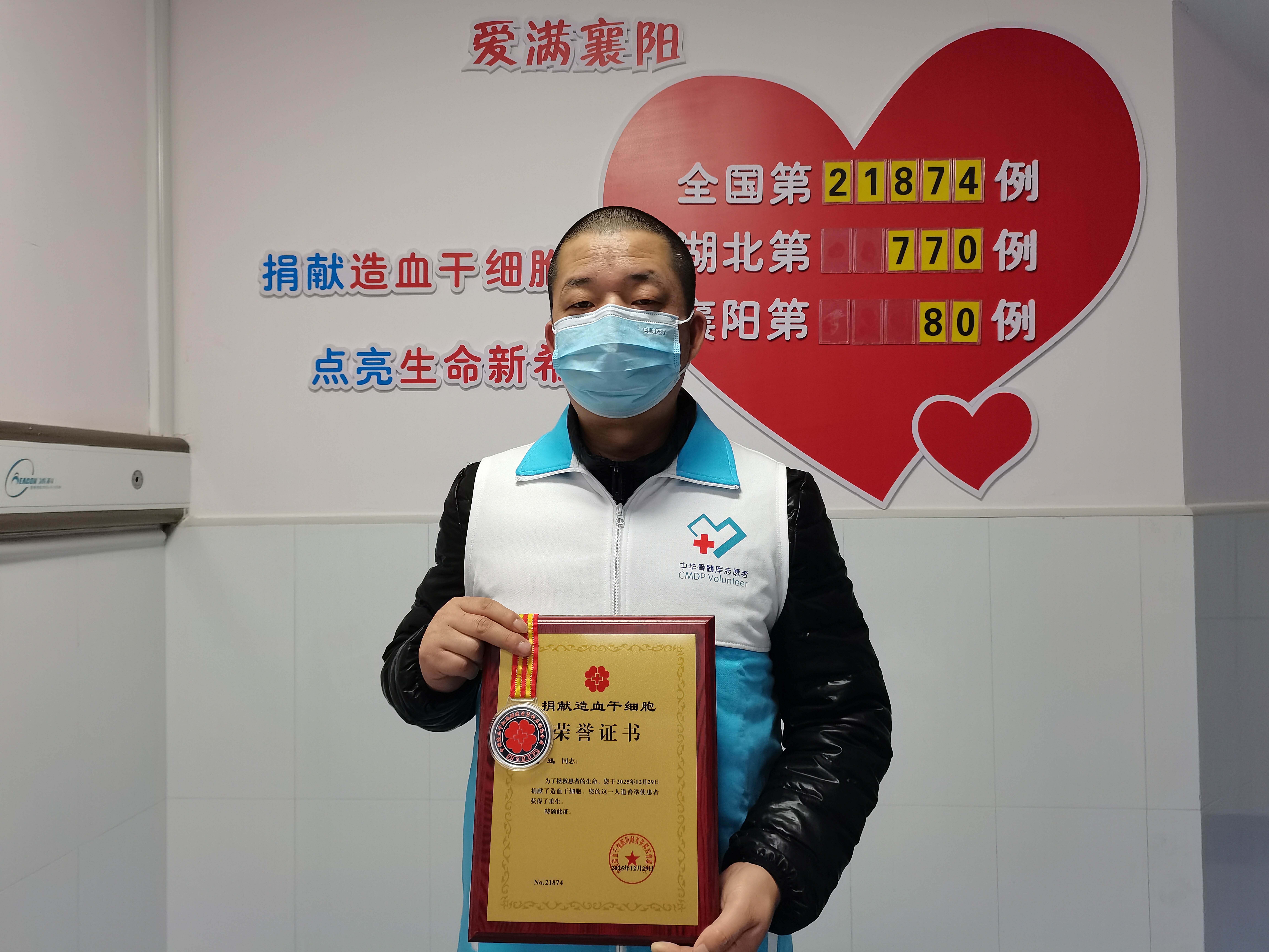12月29日,在襄阳某医院的干细胞采集室里,90后志愿者范先生(化名)完成了等待11年的心愿——成功捐献造血干细胞。这份珍贵的“生命种子”将跨越山海,为一位血液病患者点燃生命之光。