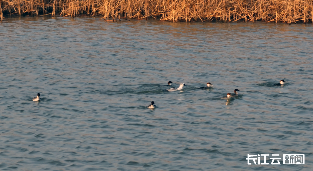 “斑头秋沙鸭也叫白秋沙鸭,是国家二级重点保护动物。它的眼睛四周是黑色的,酷似熊猫眼,因此被爱鸟人士亲切称为‘熊猫鸭’。”湖北宜城万洋洲国家湿地公园管理处旅游开发科科长顾靖介绍,斑头秋沙鸭对生存环境极为挑剔,堪称大气和水质的“生态检验师”,它的到来,正是湿地生态功能持续提升的生动证明。