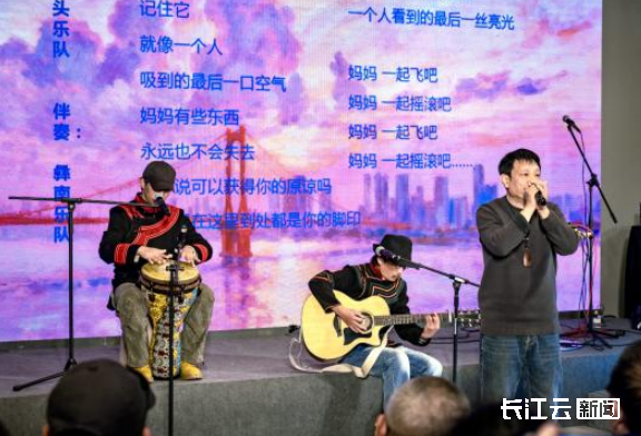 随后,彝族乐手罗彪与吉他手张慧以民谣与摇滚交织的风格演唱《莉莉安》等作品,扎根日常的音乐语言,与诗歌相互呼应。
