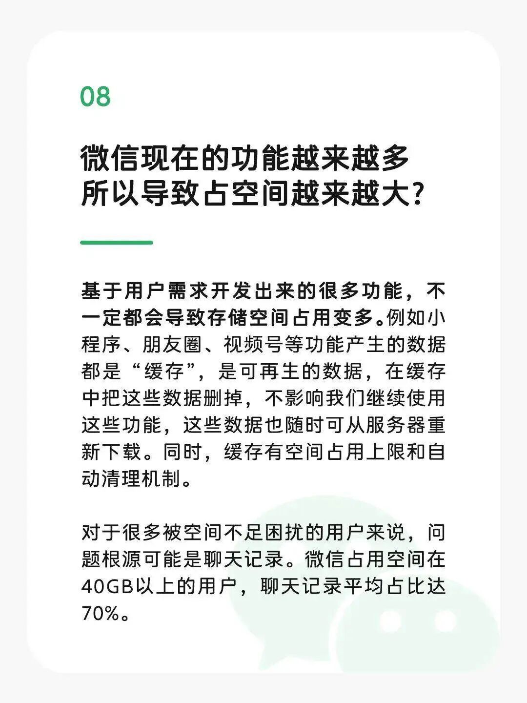 同时,微信表示这些优化调整使用户清理储存空间更方便: