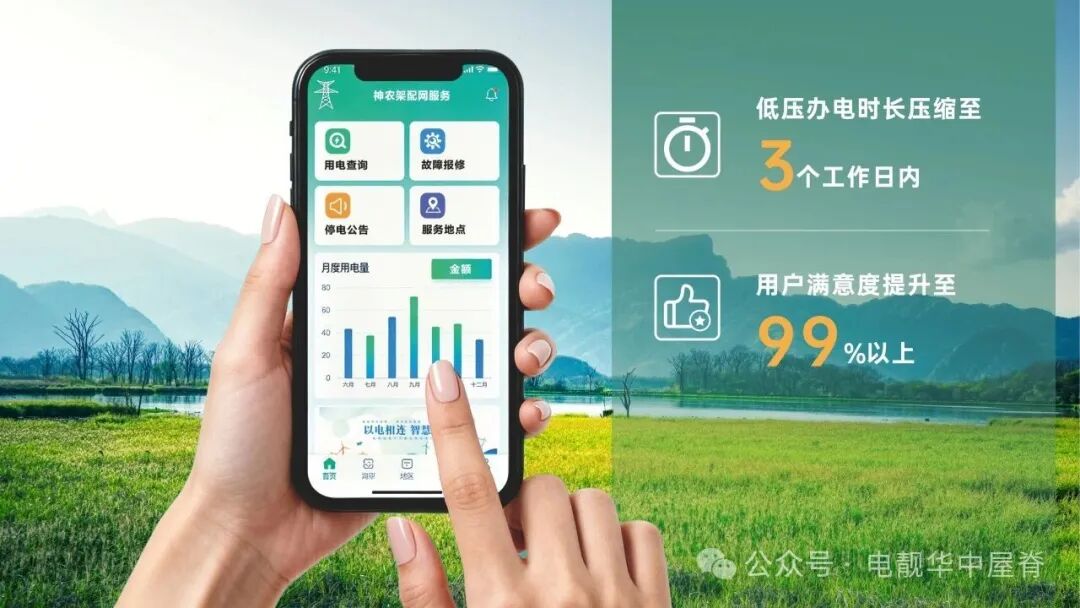 深化“村网共建”模式,完成8个乡镇便民服务点全覆盖,2个村获评国网公司电力便民服务示范建设村,7个村获评省公司示范建设村,依托“网上国网”云终端实现“用电缴费、报装、业务办理”三不出村。创新“班厅合一”服务模式与AI赋能智慧营业厅,推行“项目长代办”机制,低压办电时长压缩至3个工作日内,用户满意度提升至99%以上,“首联必访、全量回访”机制筑牢服务信任防线。