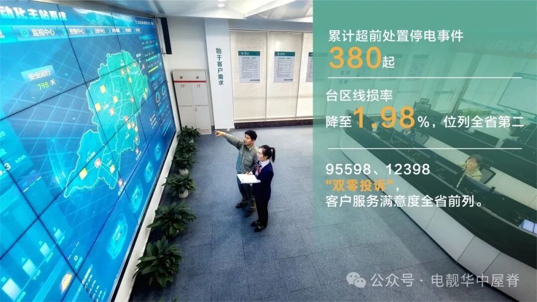 打造“电网一张图”“重要客户一张图”“指挥一张图”智慧决策体系,“停电一张图”累计超前处置停电事件380起。通过RPA技术与数字化供电所建设,实现供电质量问题“日监测、早处置”,台区线损率降至1.98%,位列全省第二,成功实现95598、12398“双零投诉”,客户服务满意度全省前列。