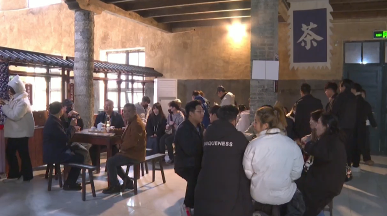 冬日寒冷,宜昌五峰土家族自治县西南茶叶市场的五峰茶体验店却暖意融融,顾客们悠闲小聚,手捧各式茶饮,散发出淡淡茶香。