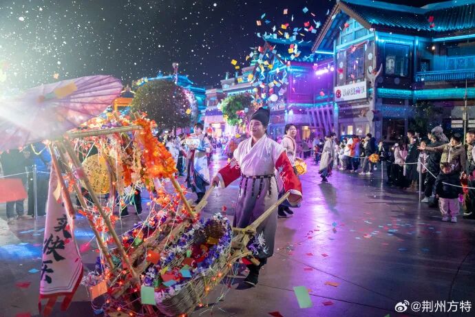 活动亮点:“荆州十二时辰”项目以古城四大片区为舞台,将实景短剧、仙侠奇幻游、微演艺、江湖音乐会与三国影视城、灵剑山仙侠IP相结合,打造20个场景。通过四区联动,共塑一座可游、可感、可沉浸的千年活态古城,为游客带来全天候、流动式、沉浸式、多业态的文旅体验。