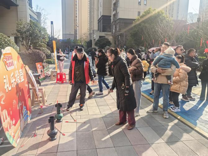在特色市集区域,人气同样高涨。糖葫芦、烤肠等美食摊位香气四溢;套圈、投壶、猜灯谜等趣味游戏吸引老老少少踊跃参与,大家在游戏中收获欢笑,也收获“福气”;便民缝补服务更是贴心又暖心,居民们纷纷点赞:“社区太贴心了,真正把服务做到我们心坎里!”