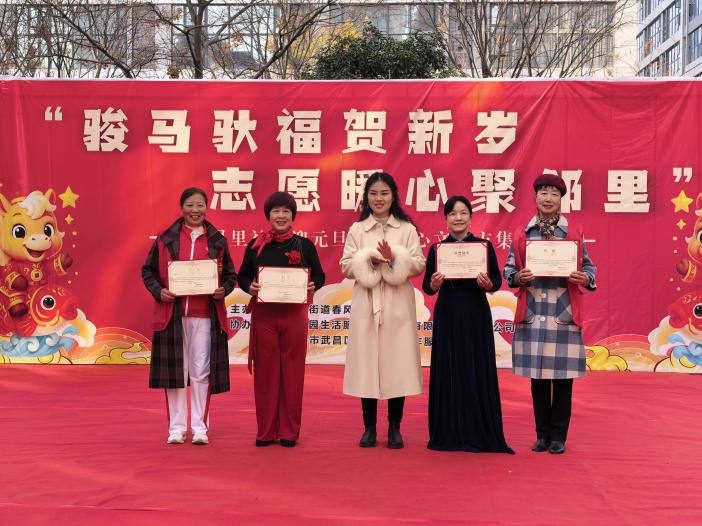 为迎接元旦佳节,弘扬志愿精神,营造文明、欢乐、暖心、共享的节日氛围。12月27日上午,武汉东湖新技术开发区九峰街道春风里社区联合武汉市武昌区华仁社会工作服务中心、碧桂园生活服务集团股份有限公司武汉分公司,以“骏马驮福贺新岁,志愿暖心聚邻里”为主题,举办迎元旦志愿暖心文化市集活动。活动内容丰富、形式多样,将文艺汇演、志愿表彰、特色市集、便民服务等内容有机融合,为居民带来一场充满年味与幸福感的节日盛宴,让志愿暖流在社区流淌,让向上向善的力量在邻里间传递。