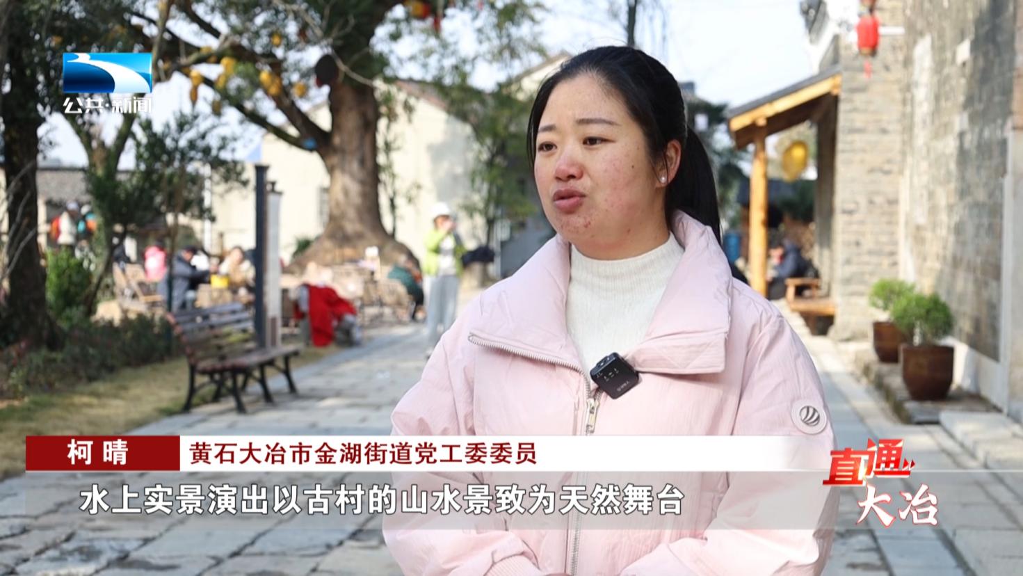 黄石大冶市金湖街道党工委委员 柯晴:水上实景演出以古村的山水景致为天然舞台,将上冯古村的民间传说,传统故事通过灯光、音乐与演员的精彩演绎生动呈现。