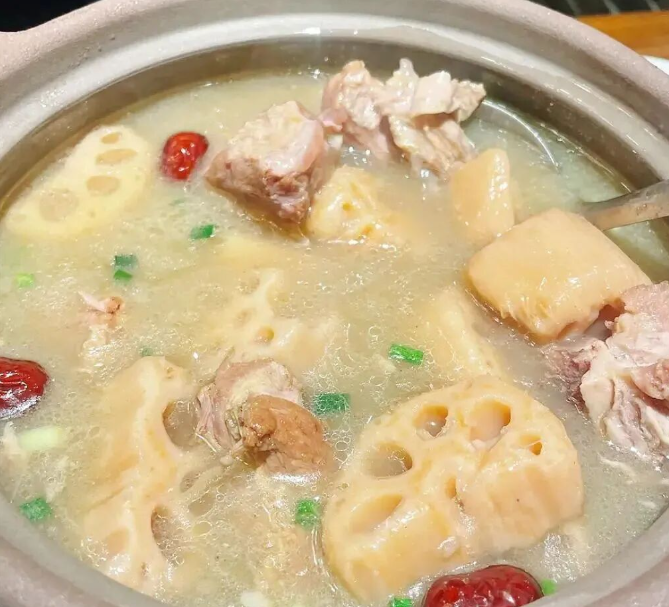 湖北被誉为“千湖之省”,盛产软糯绵密的九孔粉藕,爱喝汤的湖北人喜欢将其制作成排骨藕汤,特别是在寒冬腊月,煲上一锅,吃起来暖心又暖胃,浑身舒坦。制作排骨藕汤并不难,以新鲜的土猪排骨和粉藕为主料,先把排骨焯水去腥,再放入砂锅中,加入姜片,文火炖制软烂,再放藕块,炖煮一会即可。做好的排骨藕汤,肉质软烂,藕块粉面,喝起来非常鲜美。