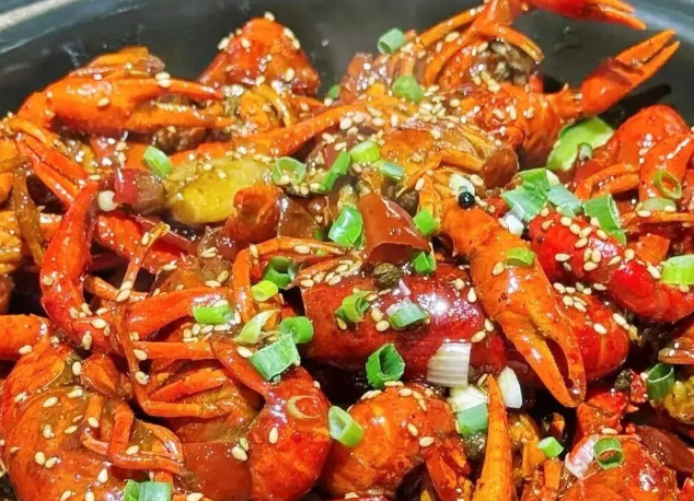 潜江小龙虾个头硕大,肉质肥嫩,可以做出油焖、蒜蓉、柠檬等128种口味,其中油焖最受欢迎。油焖小龙虾做法也很讲究,小龙虾刷洗干净后,下锅油炸,然后起锅烧油,放入辣椒、姜片、大蒜、茴香等炒香,再放小龙虾,加啤酒焖制入味即可。做好的小龙虾,香辣过瘾,百吃不厌,配上啤酒,真是夜宵最佳搭档。