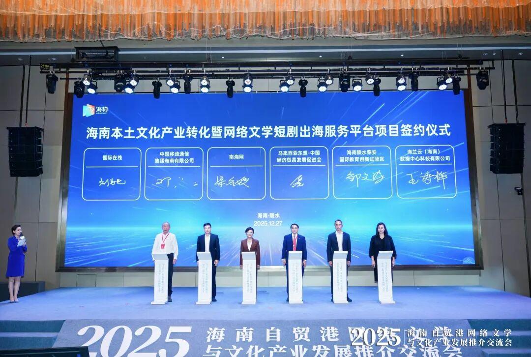 在签约仪式上,南海网与马来西亚东盟-中国经济贸易发展促进会、陵水黎安国际教育创新试验区、中国移动通信集团海南有限公司、海兰云(海南)数据中心科技有限公司、国际在线举行签约仪式,达成战略合作,涵盖短剧出海东盟市场、出海市场分析与成果反馈服务、智库产品开发、国际通信与跨境网络支撑、数字化协同升级、全产业链合作、文化出海品牌推广、版权保护、绿色算力服务及人工智能赋能等多个领域。这些合作将为海南本土文化产业转化暨网络文学短剧出海服务平台的建设注入新动能。