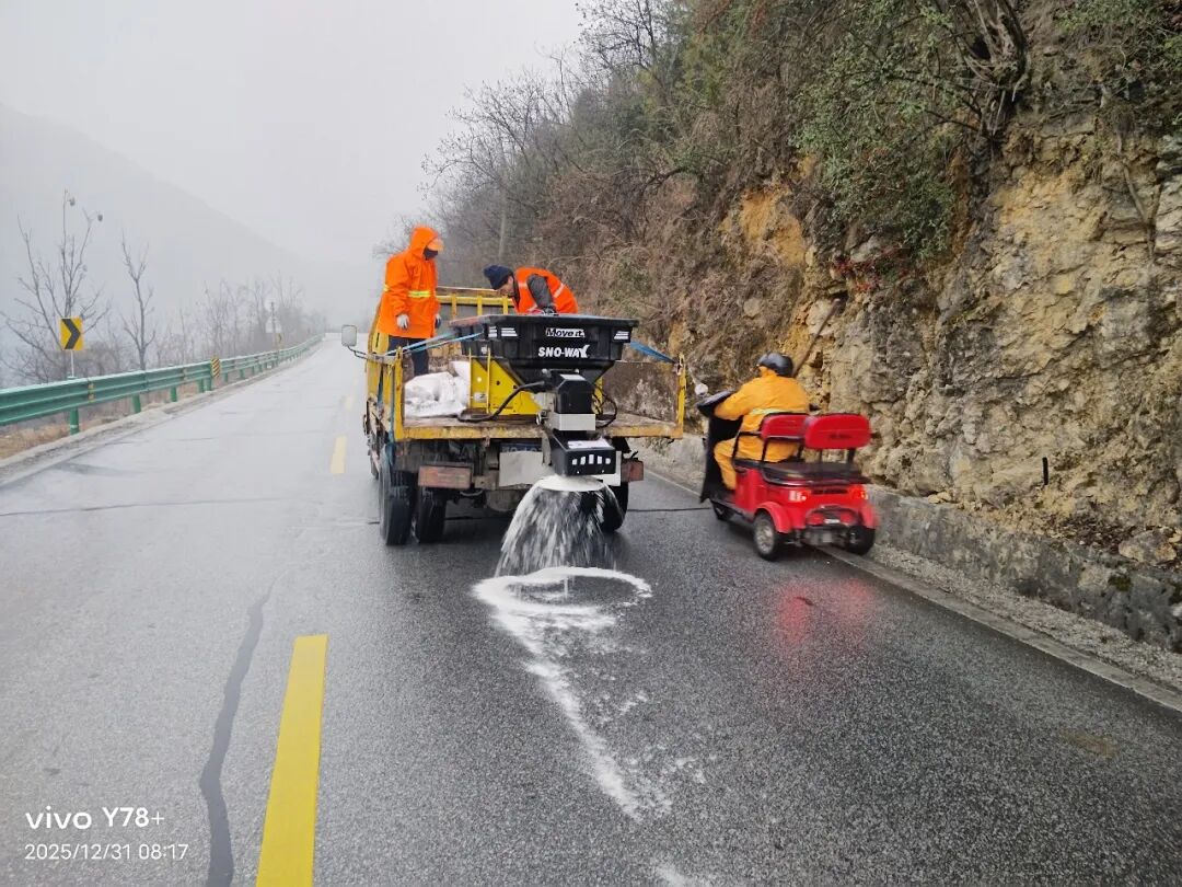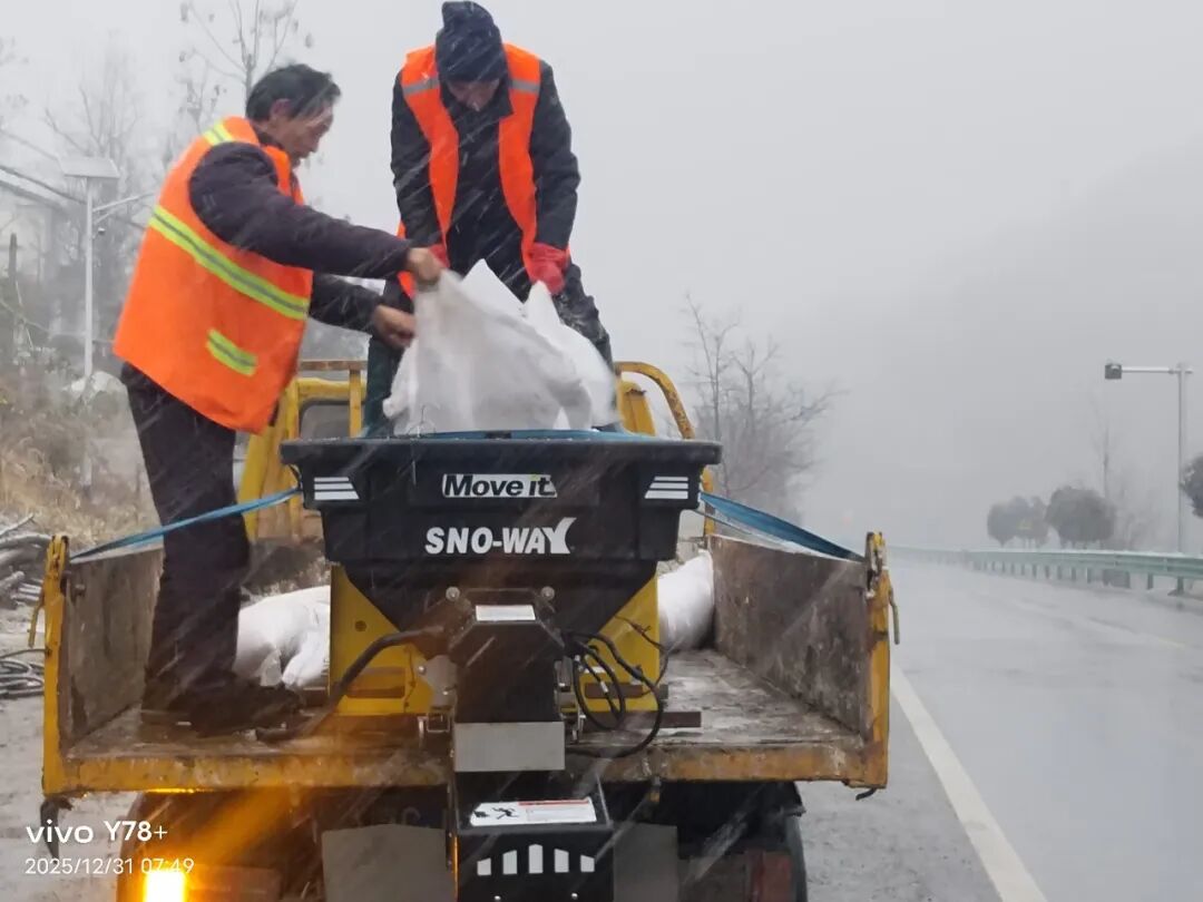 闻“雪”而动,打好“应急仗”。自12月30日晚间开始,G242三关段,G209雷锋垭段等重点易积雪结冰路段已开展第一轮撒融雪剂作业,出动公路巡查人员62人,车辆9台次,撒布融雪剂3吨,出动各类机械5台,累计巡查国省干线公路420余公里。目前,本辖区国省干线公路内无因雨雪而导致中断,客运公交未因雨雪天气停运。
