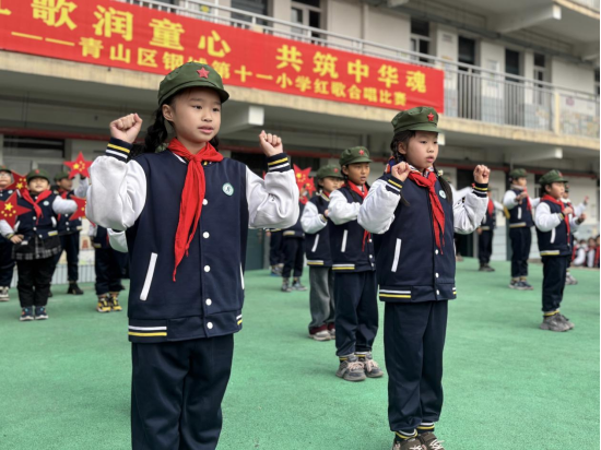 冬日暖阳洒满校园,红色旋律激荡人心。12月30日上午,武汉市青山区钢城十一小操场变身“思政教育大课堂”,“红歌润童心 共筑中华魂”红歌合唱比赛如期举行。十一小学子以歌为媒,用嘹亮歌声重温红色记忆,以饱满热情传承爱国精神,使这场文艺活动升华为一堂生动鲜活的“行走的思政课”,在辞旧迎新之际绘就出最美的爱国画卷。