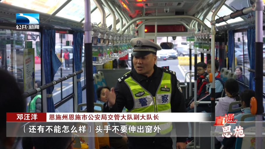 恩施州恩施市公安局交管大队副大队长 邓汪洋:(在车上不能怎么样)随意走动,(还有不能怎么样)头手不要伸出窗外。