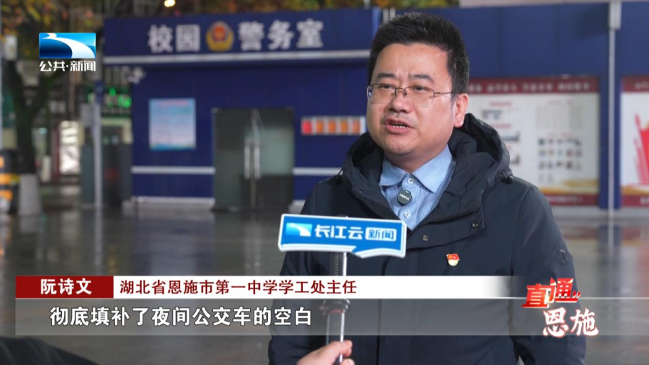 湖北省恩施市第一中学学工处主任 阮诗文:彻底填补了夜间公交车的空白,也消除了人车混行的安全隐患,学生快速离校,安全到家,就是对我们学校工作的最大支持。