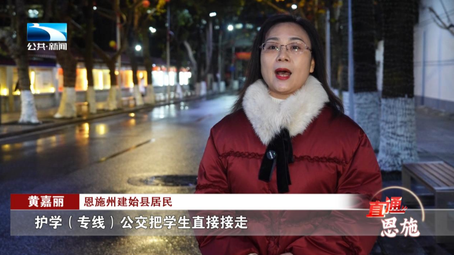 恩施州建始县居民 黄嘉丽:护学(专线)公交把学生直接接走,路边也干净整齐了,路好走多了,我们附近的居民也受益。