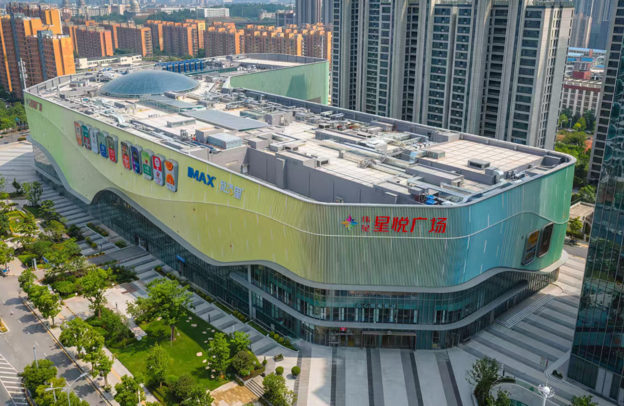 该项目紧邻地铁2号线佛祖岭站及有轨电车L1佛祖岭站,建筑面积约12万平方米,汇集超230家品牌,包括悦活里超市、博纳IMAX院线影城等。项目创新性将自然生态融入商业,打造“公园MALL”概念,打造了约7000平方米的室外公园,约2000平方米中庭和光谷首个室内空中花园。构造全年龄层友好服务体系,是星悦广场“社区共生体”的另一追求:为亲子家庭提供母婴室、儿童车租赁到防走失手环,形成完整关怀链;打造宠物友好与骑行友好商圈,配备便利设施,彰显对多元生活方式的包容与尊重。
