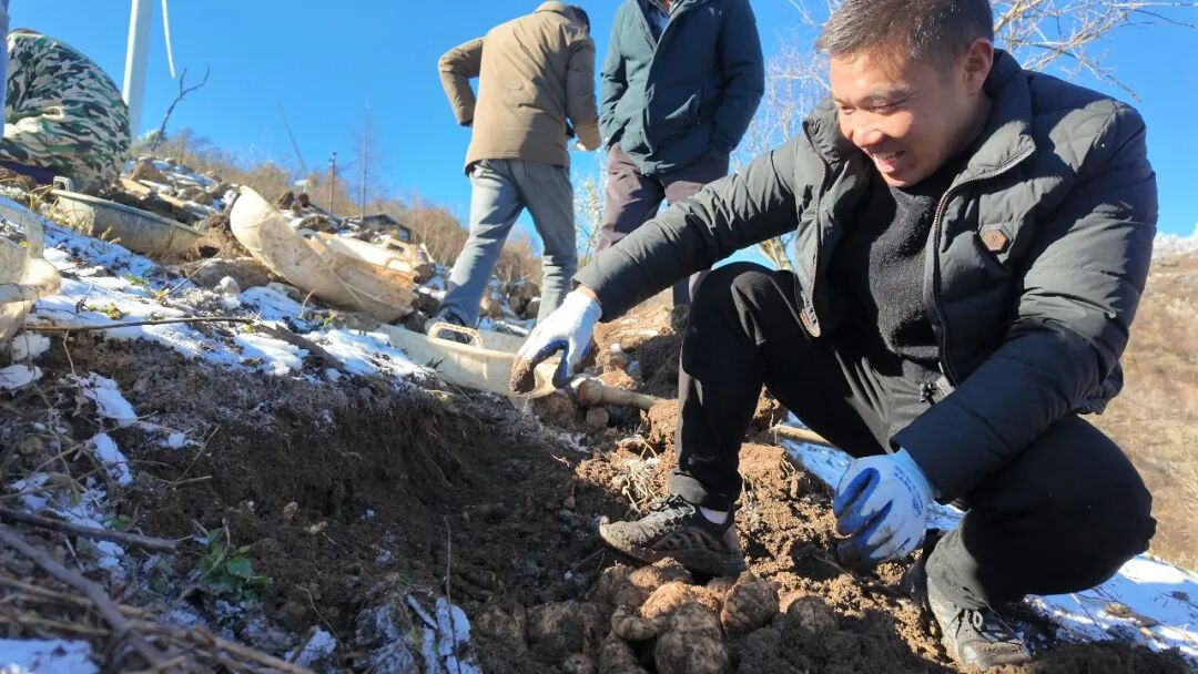 “这就是我一直在找的好天麻。”安徽客商丁永启踩着没踝的积雪,蹲在牛庄村返乡创业青年吴晓峰的天麻地里,冻得通红的脸上掩饰不住的惊喜,“要400斤,一颗都不能挑错!”